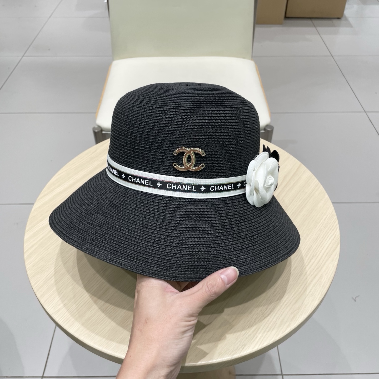 Chanel香奈儿山茶花草帽遮阳帽_5808
