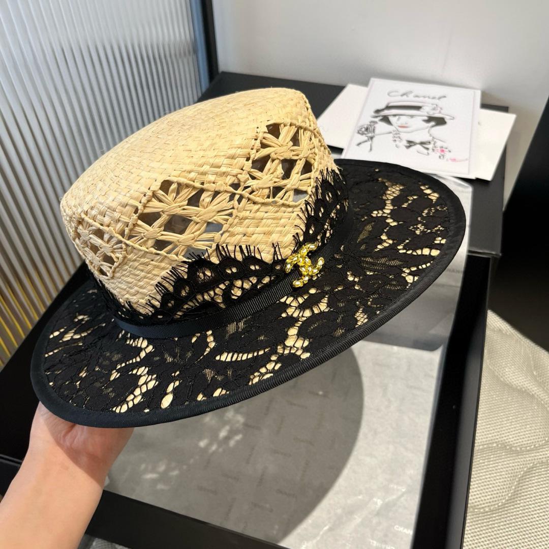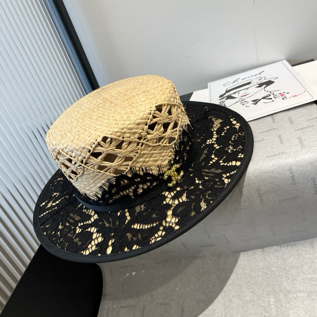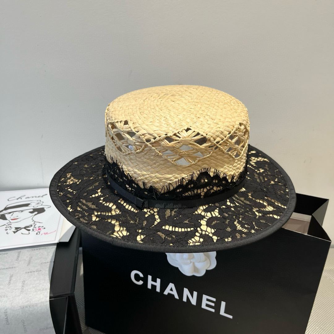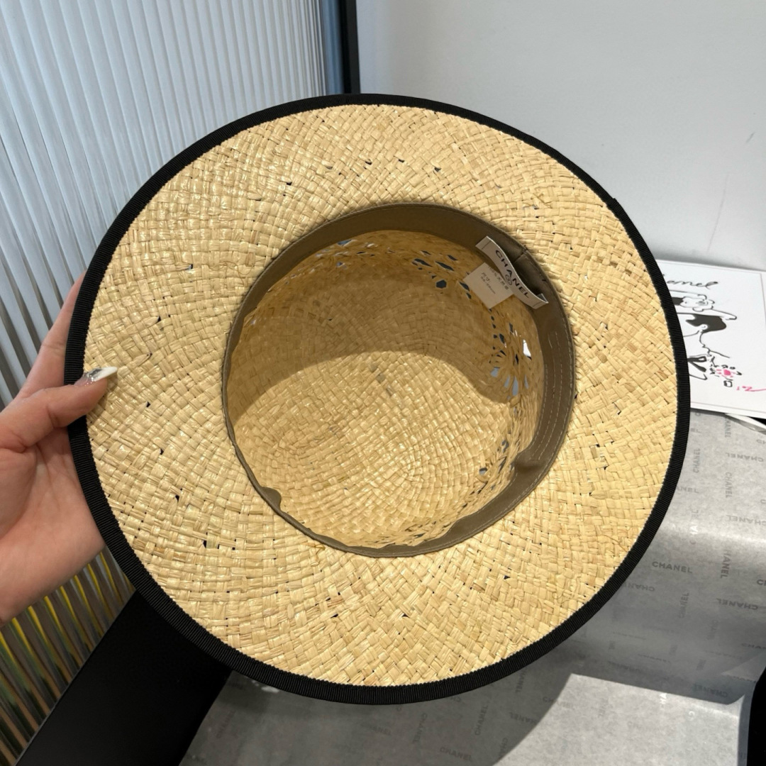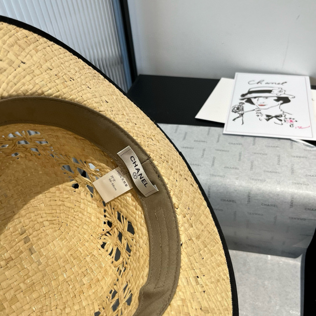 Chanel香奈儿平顶礼帽,拉菲草帽,超重工定制,头围57cm