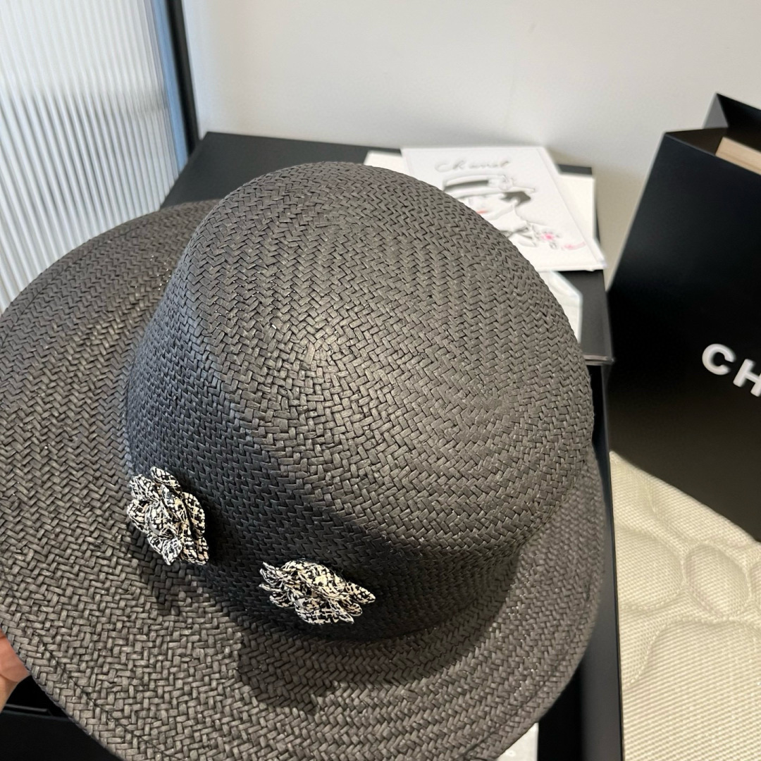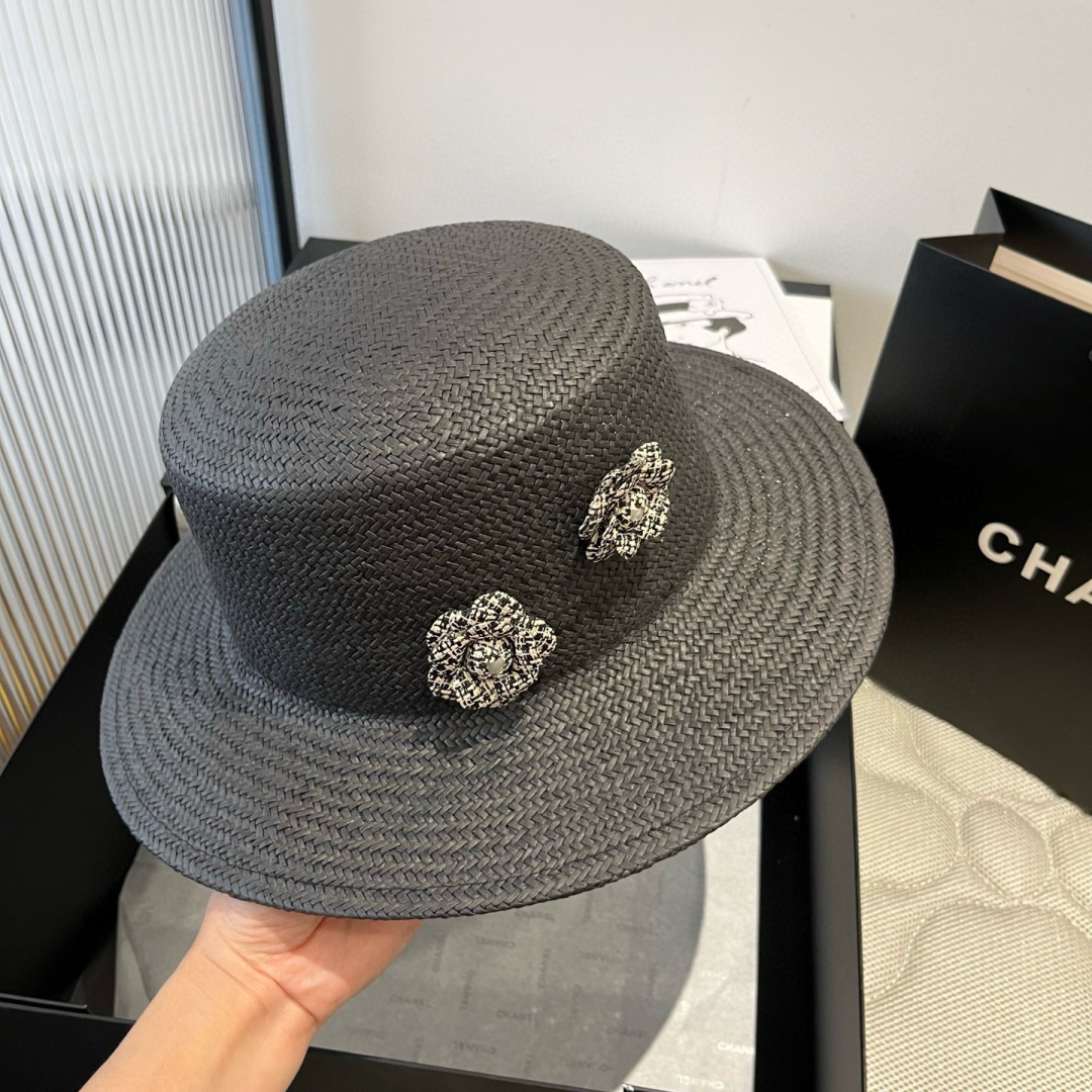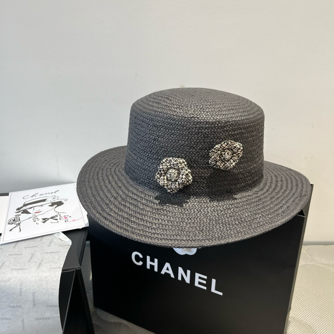 Chanel香奈儿平顶礼帽,遮阳草帽,头围57cm