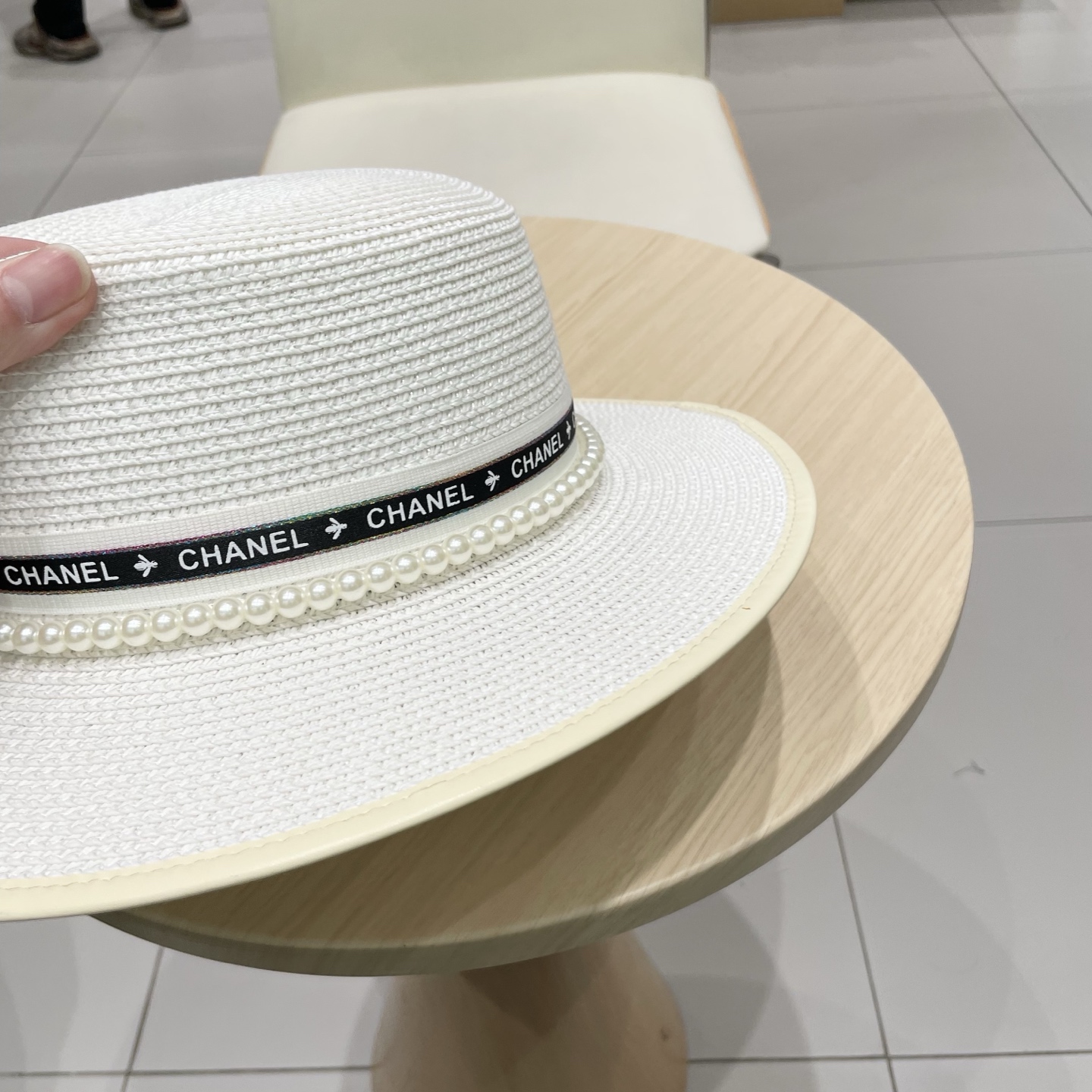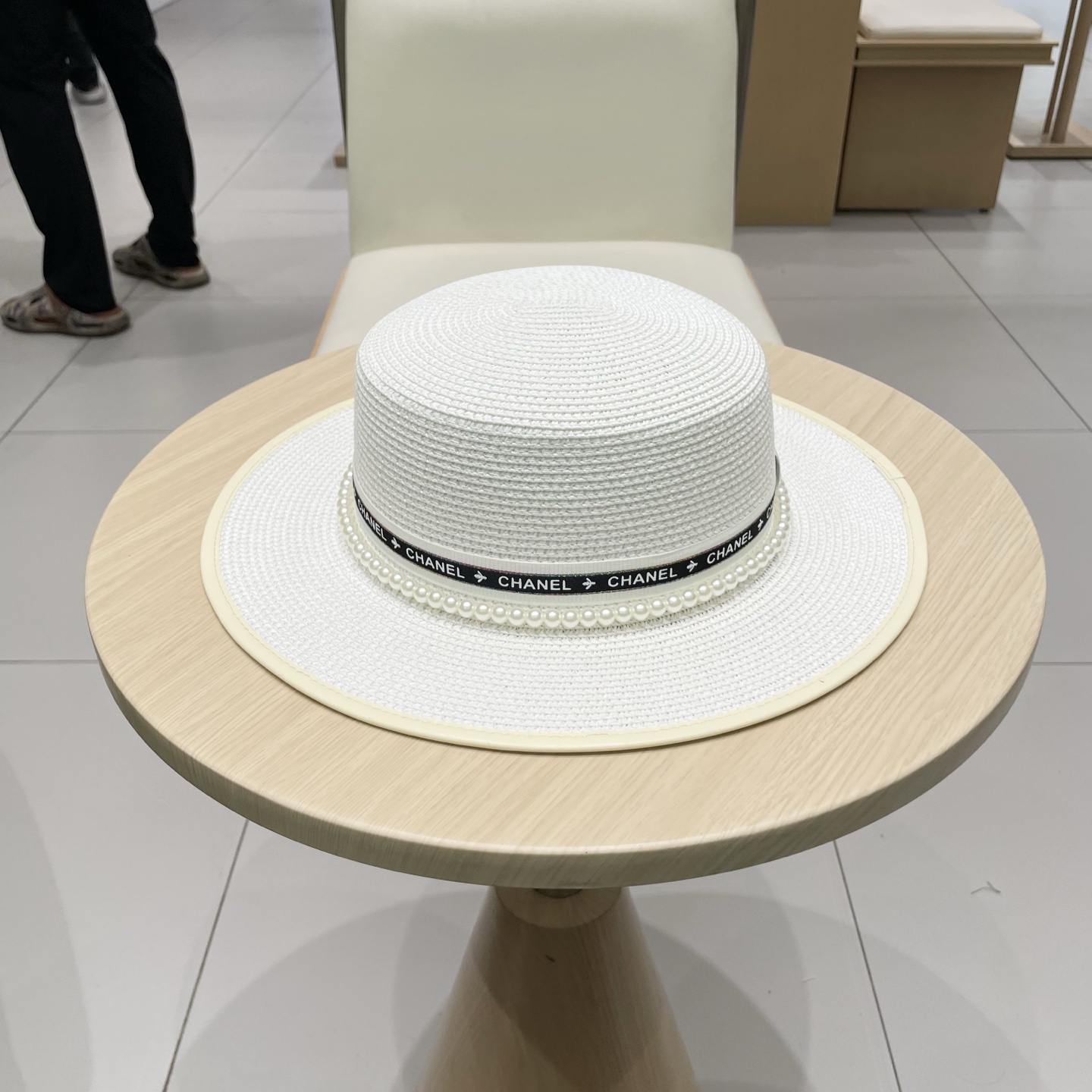 Chanel香奈儿平顶草帽,礼帽,头围57cm