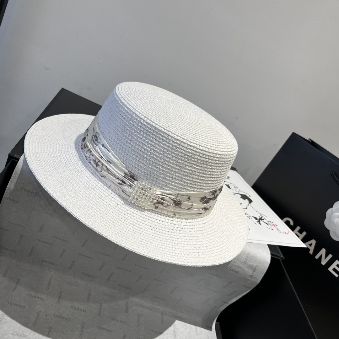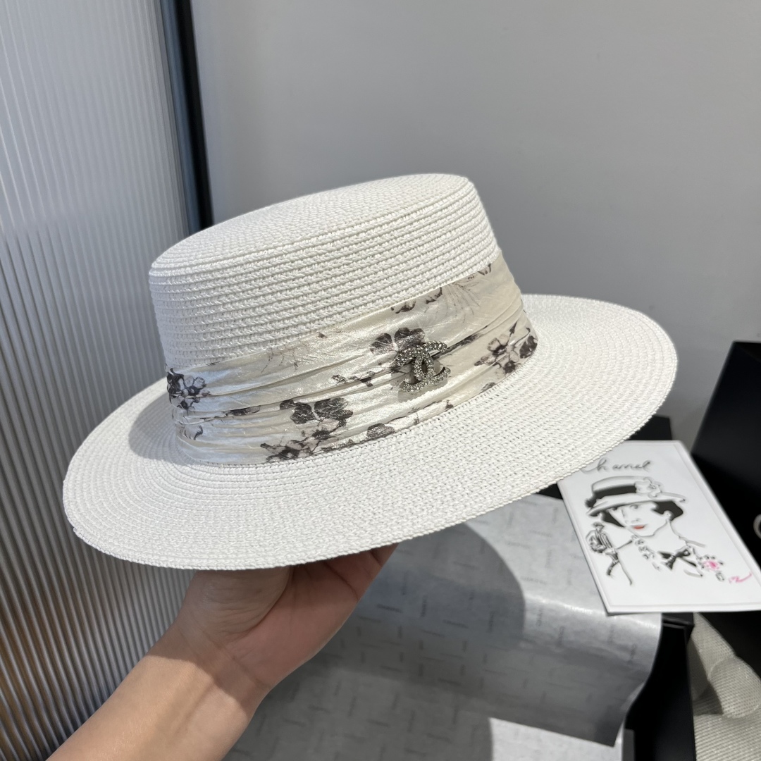 Chanel香奈儿平顶草帽,礼帽,头围57cm