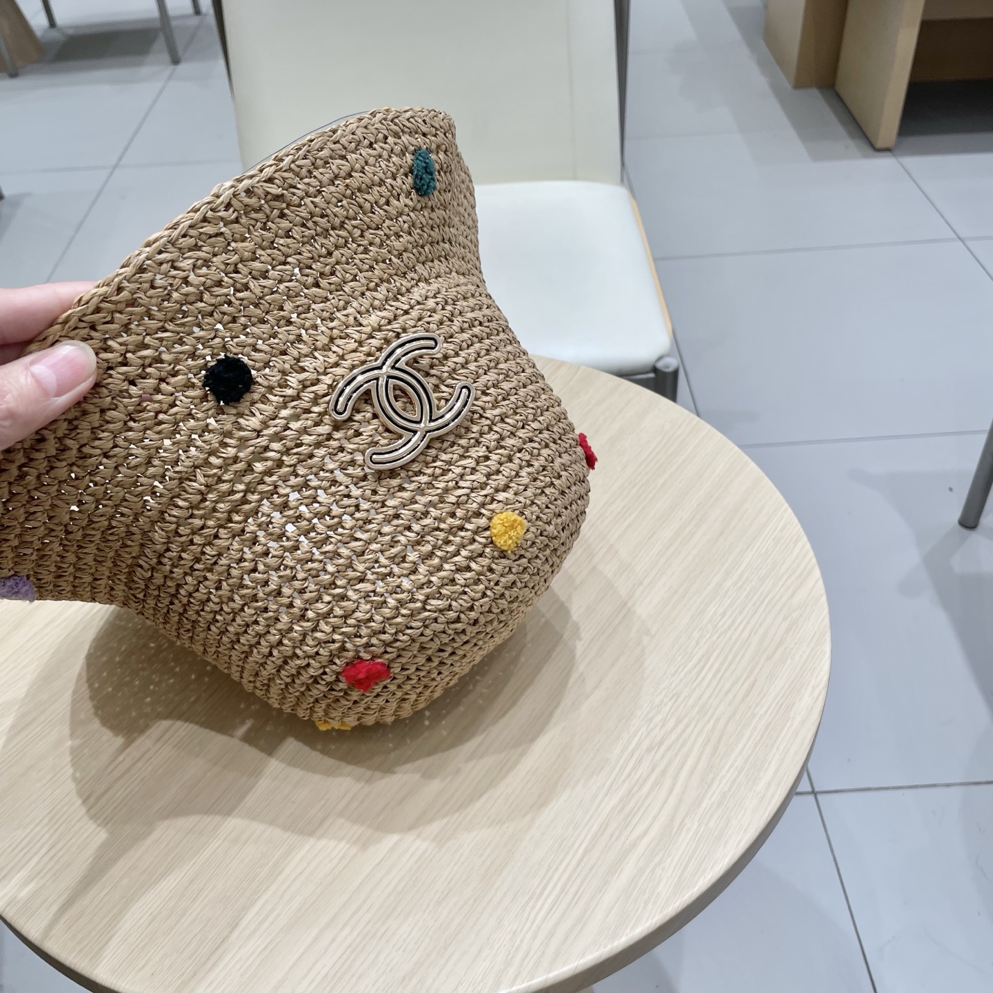 Chanel香奈儿度假风沙滩出游大檐遮阳草帽女夏季草编可折叠气质时尚防晒渔夫帽