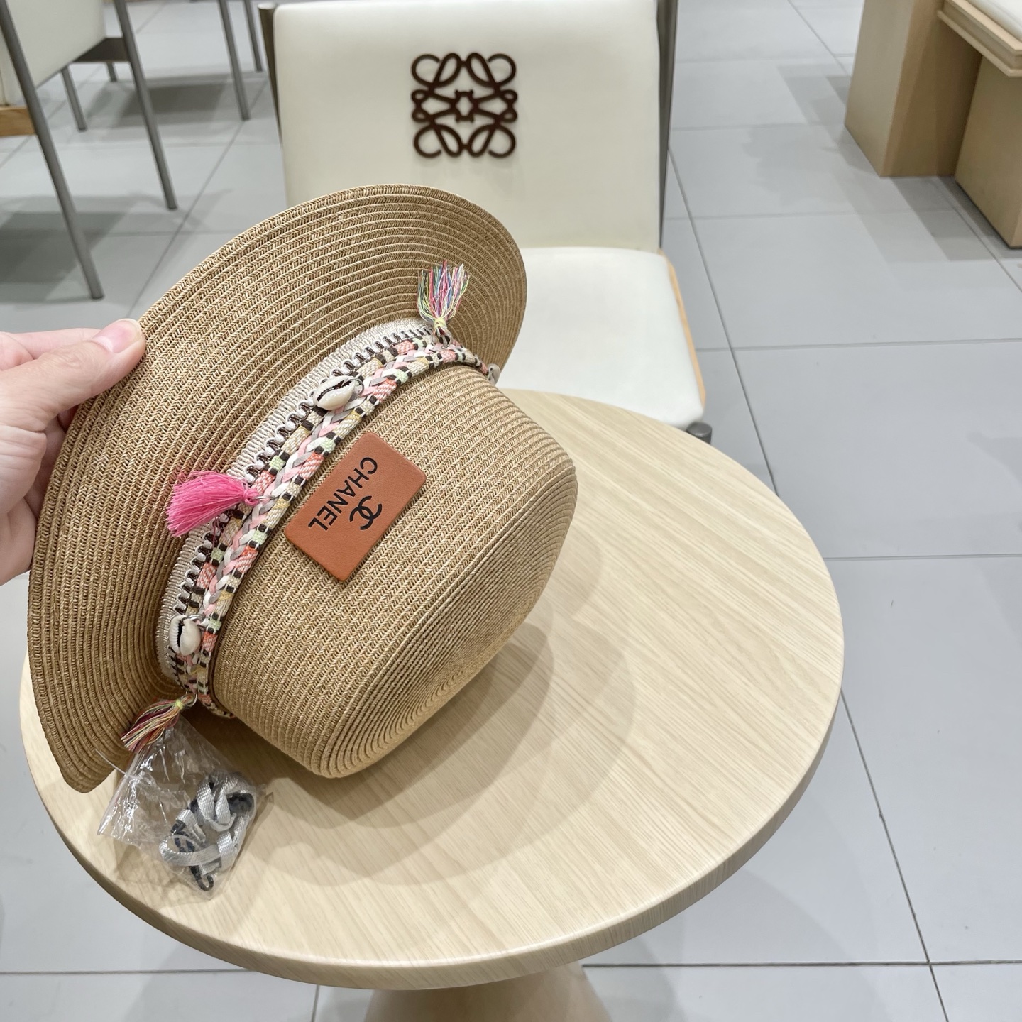 Chanel香奈儿新款平顶草帽,细草制作,帽型超赞