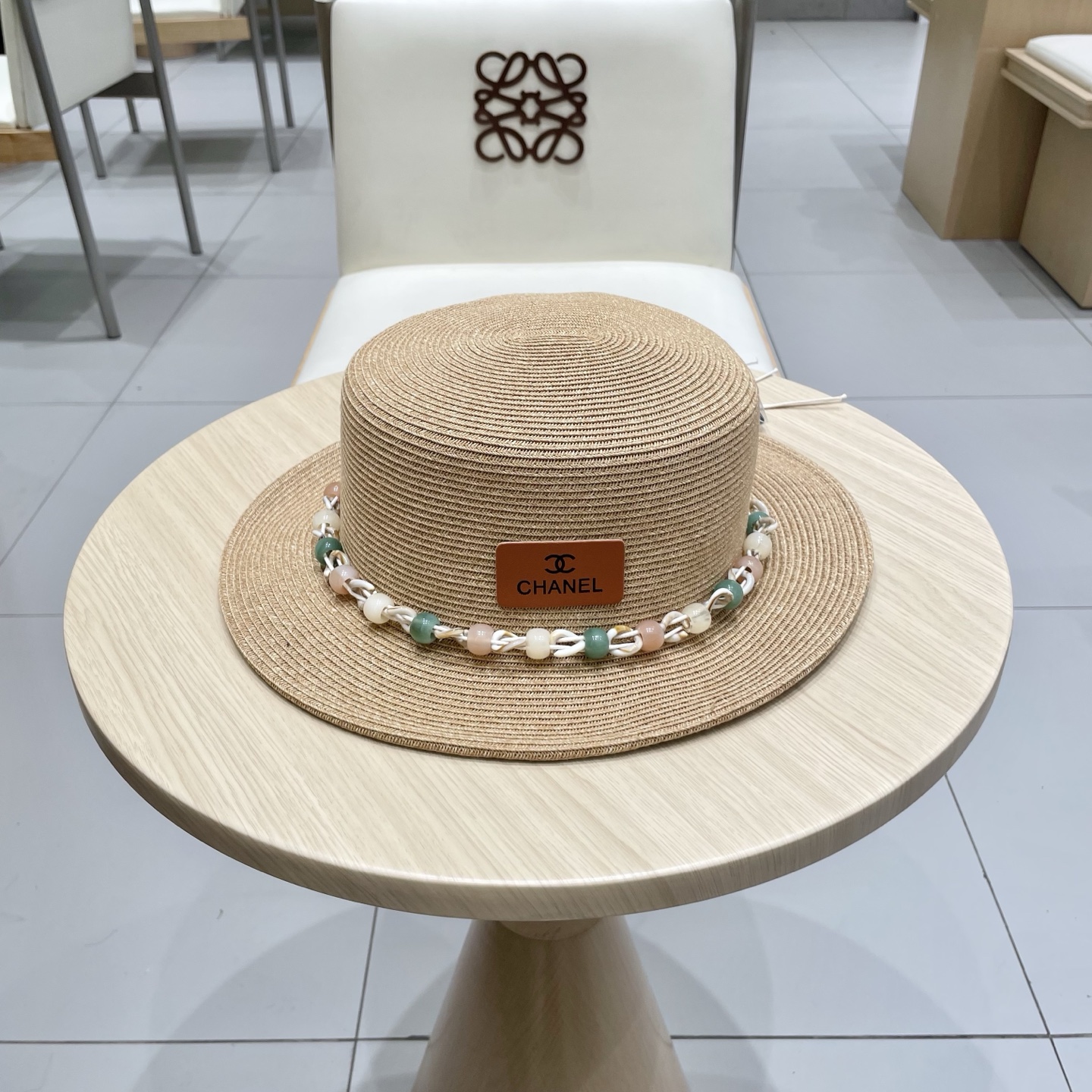Chanel香奈儿新款平顶草帽,细草制作,帽型超赞