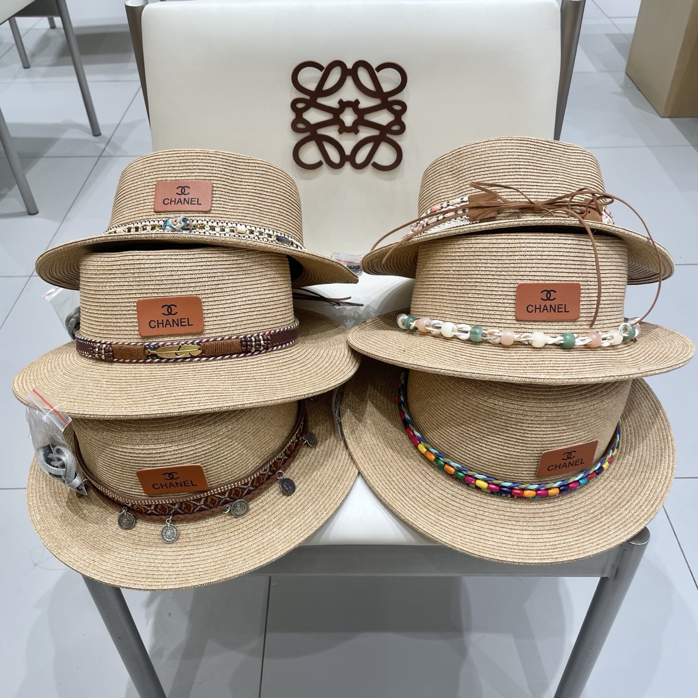 Chanel香奈儿新款平顶草帽,细草制作,帽型超赞