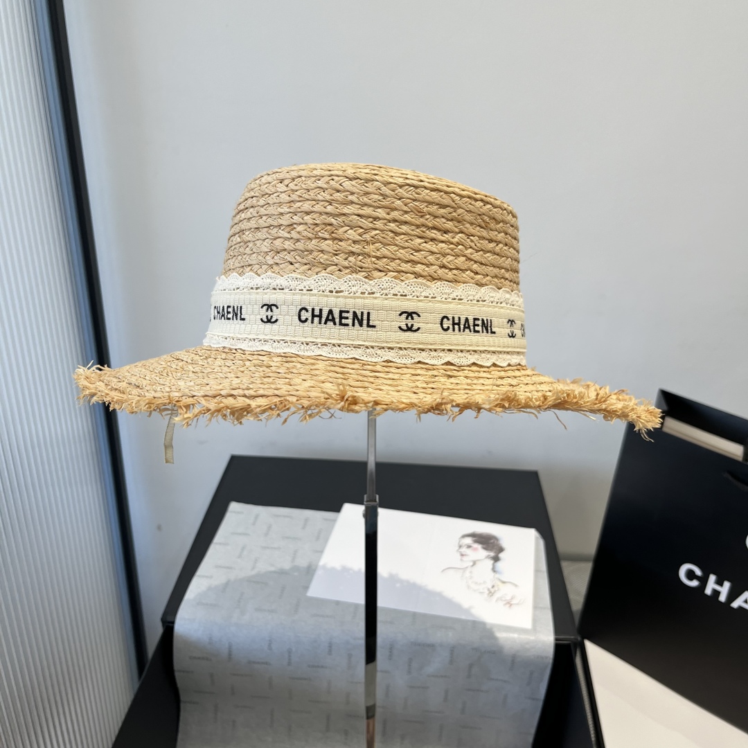 Chanel香奈儿新款拉菲草礼帽,平顶遮阳草帽,头围57cm