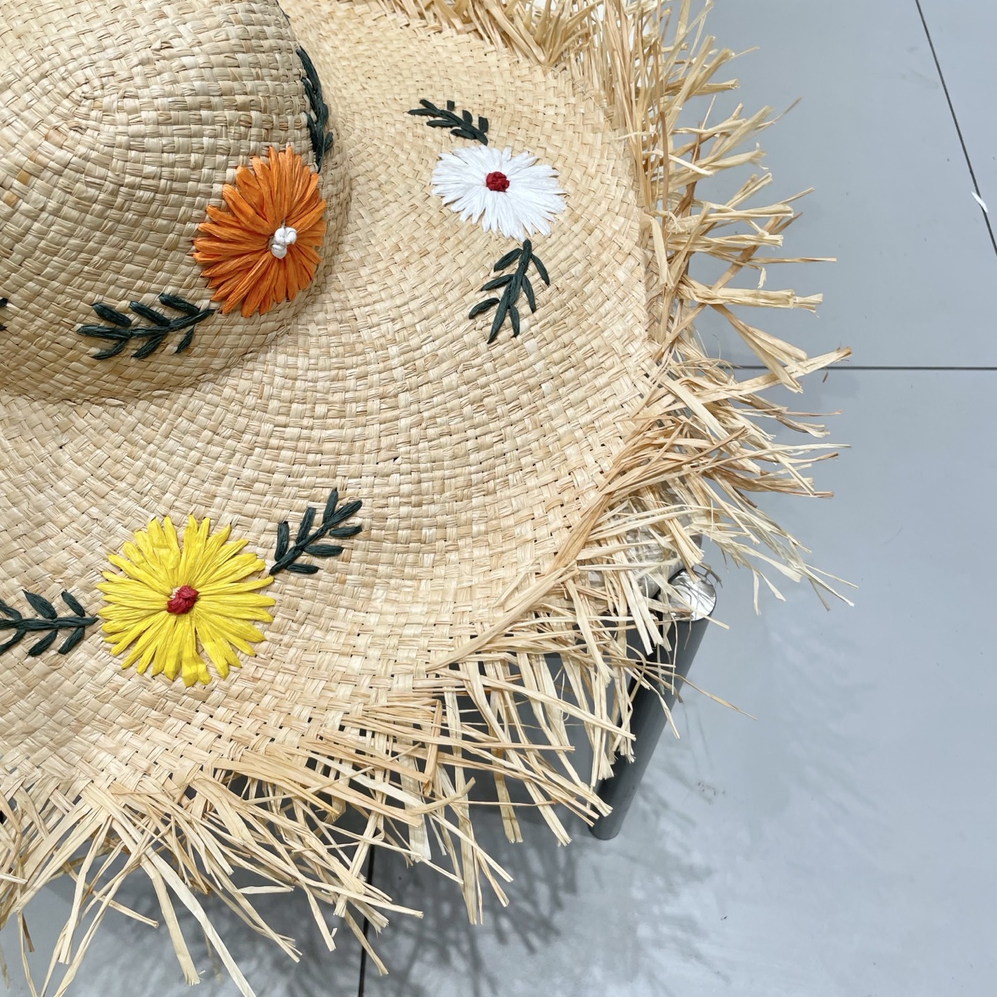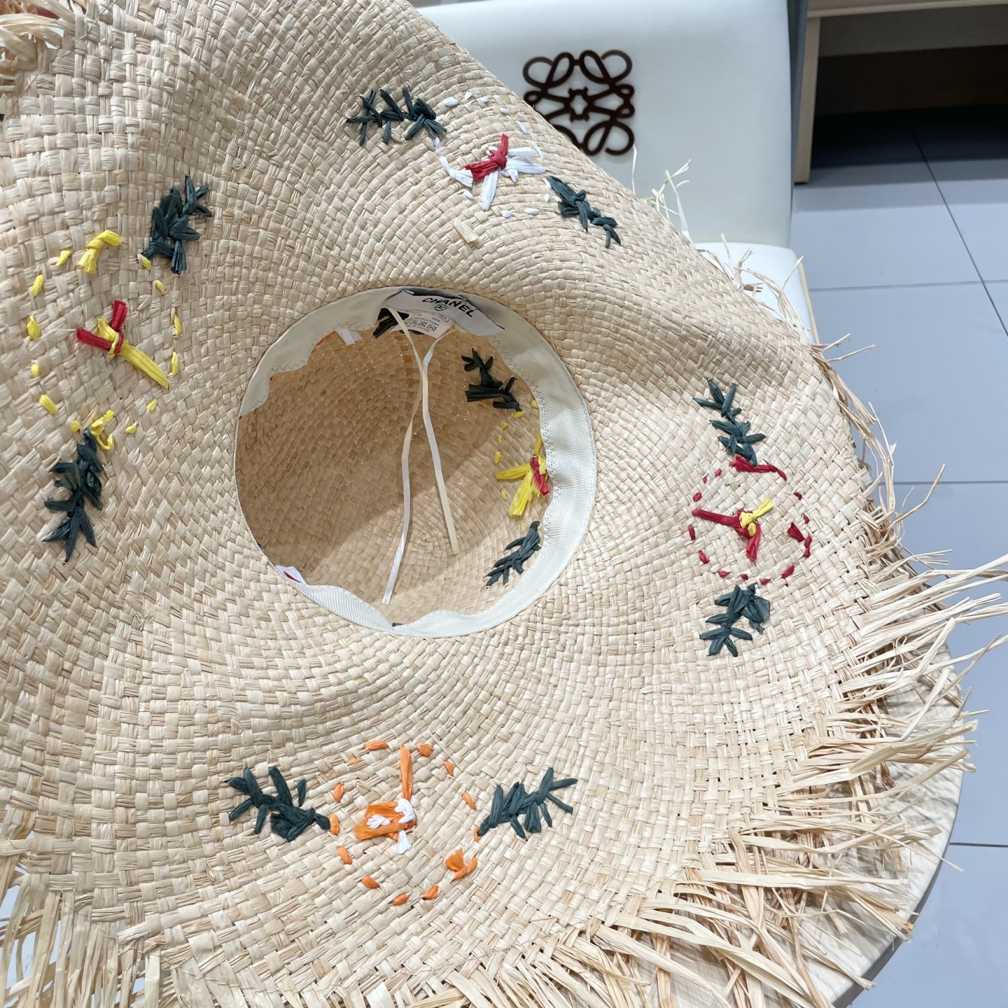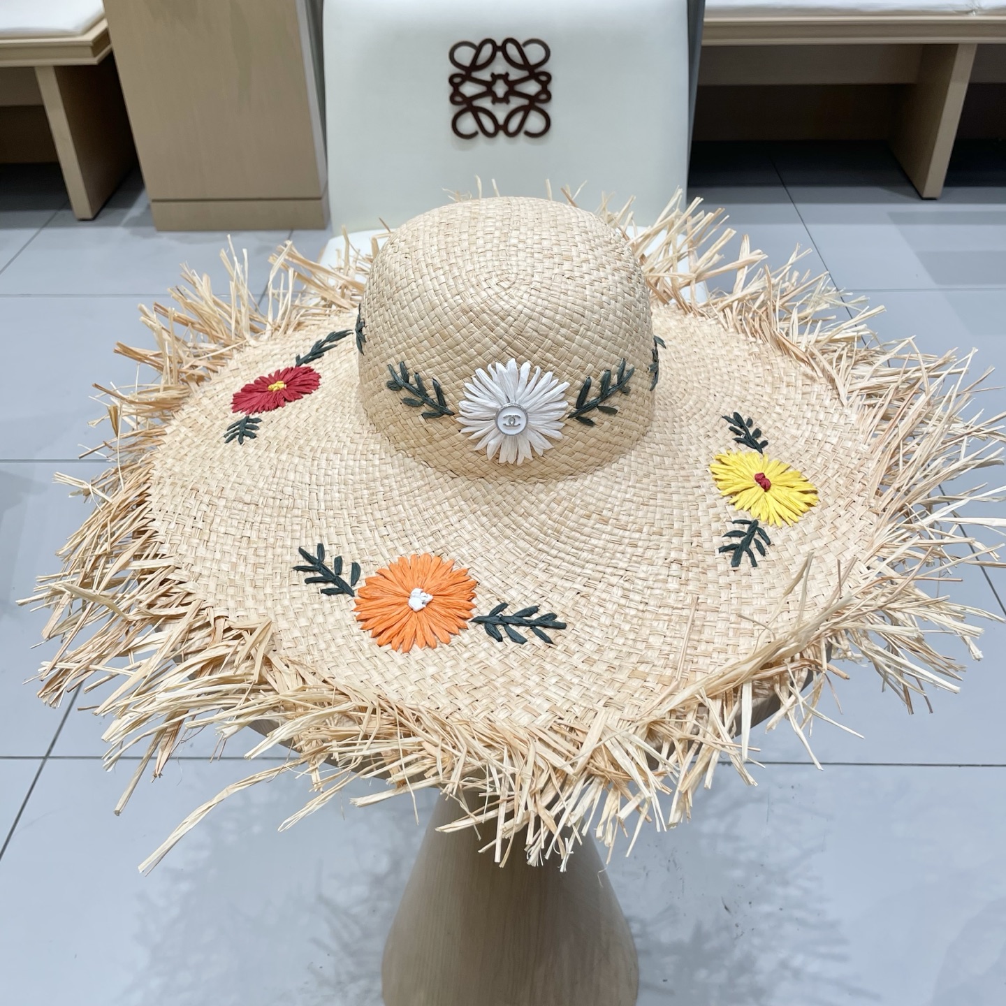 Chanel香奈儿花朵拉菲草帽女夏大帽檐草编遮阳防晒帽海边沙滩度假太阳帽子