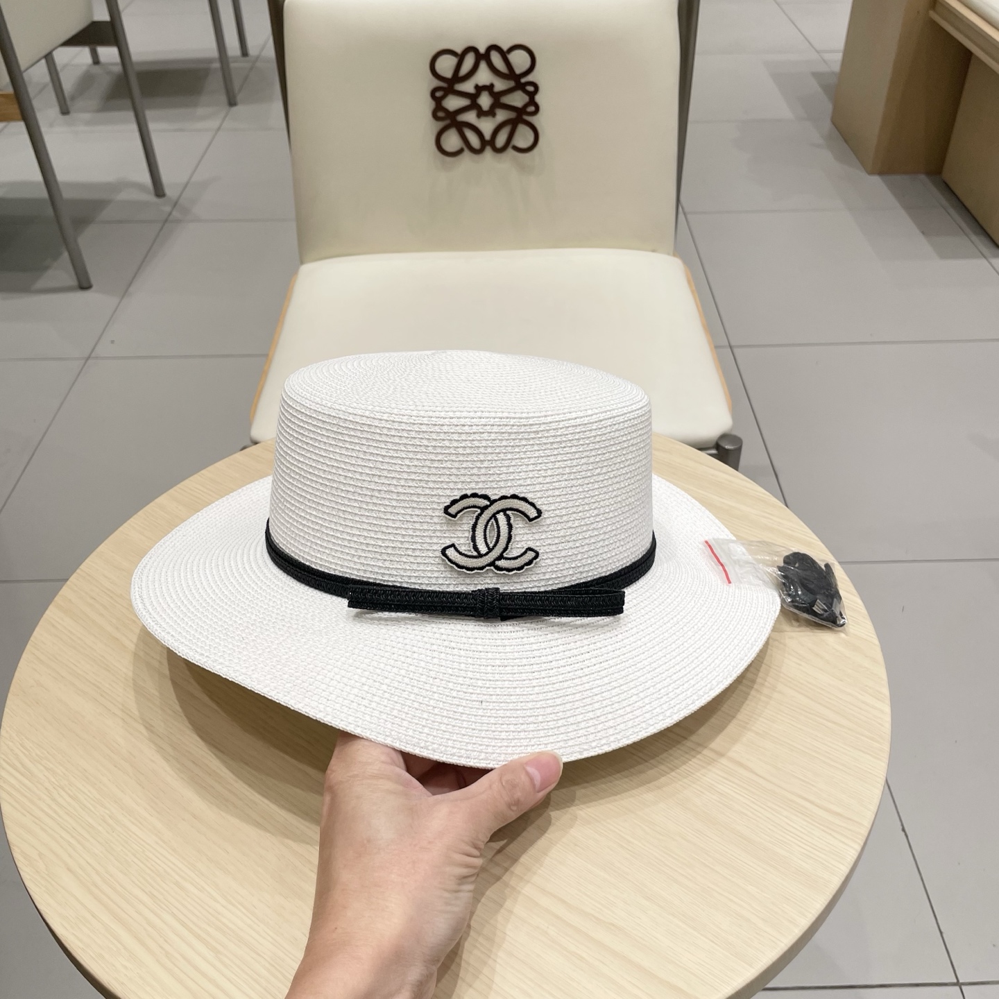 Chanel香奈儿草帽,可折叠遮阳帽,细草制作,头围57cm