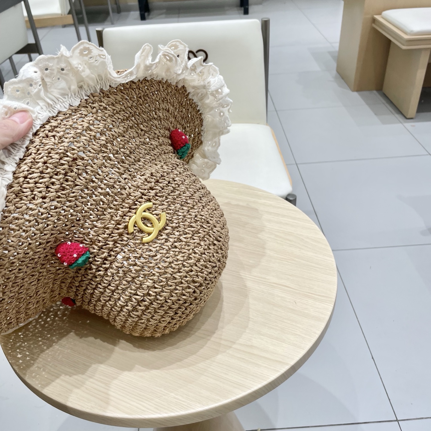chanel香奈儿草莓蕾丝边草帽女夏_5726
