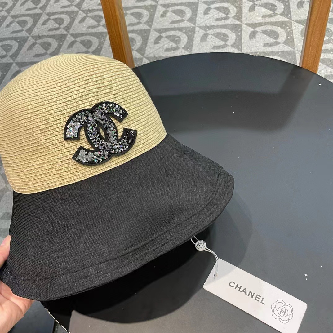 chanel香奈儿蝴蝶结渔夫帽子女显脸小夏季防紫外线草帽大檐遮脸防晒帽太阳帽潮