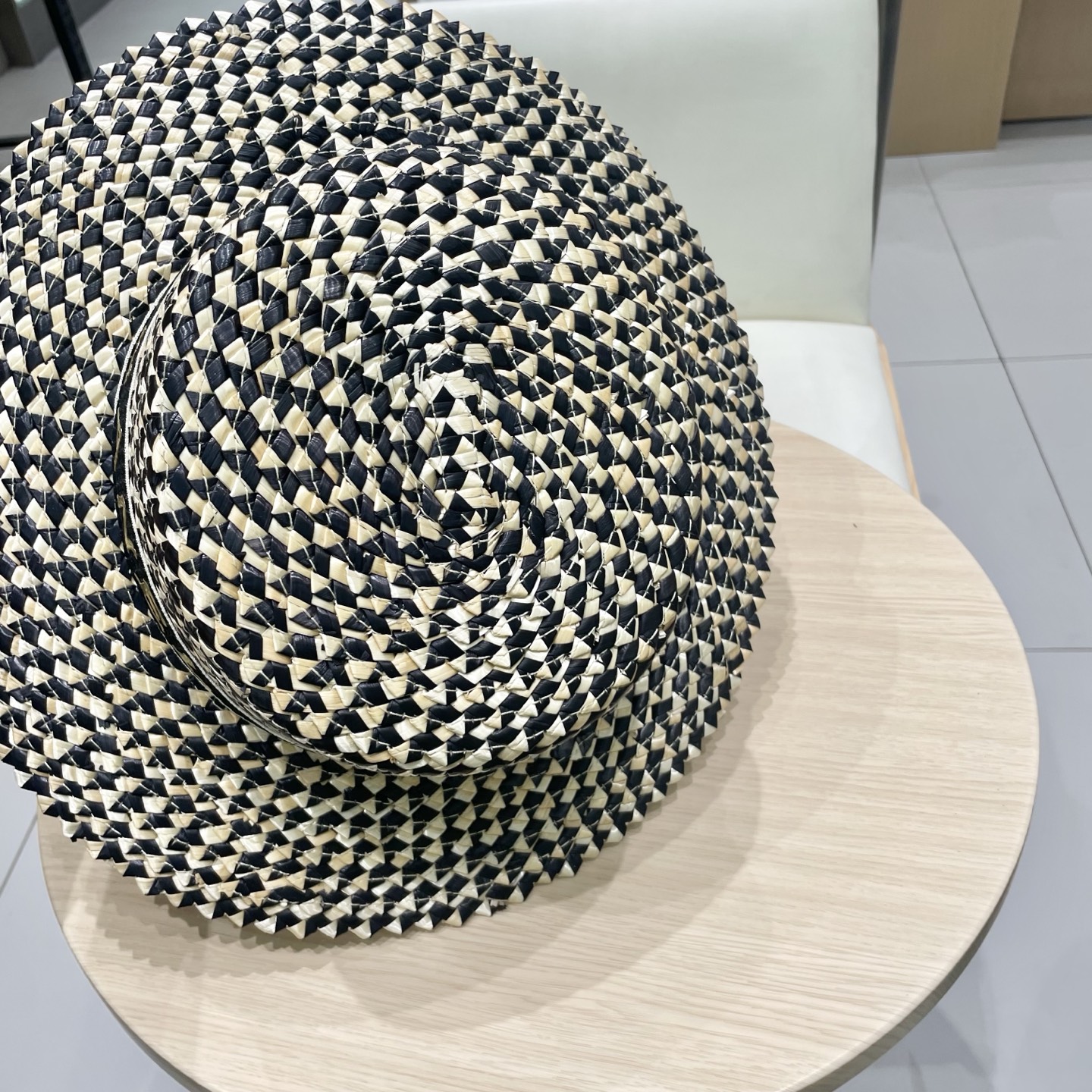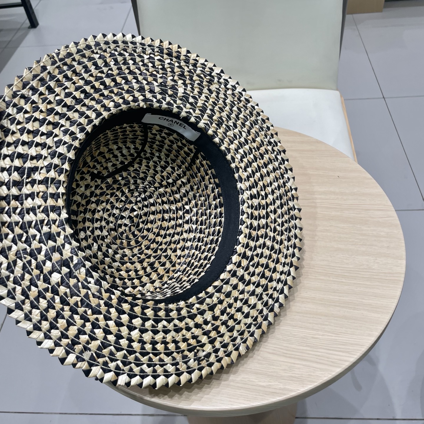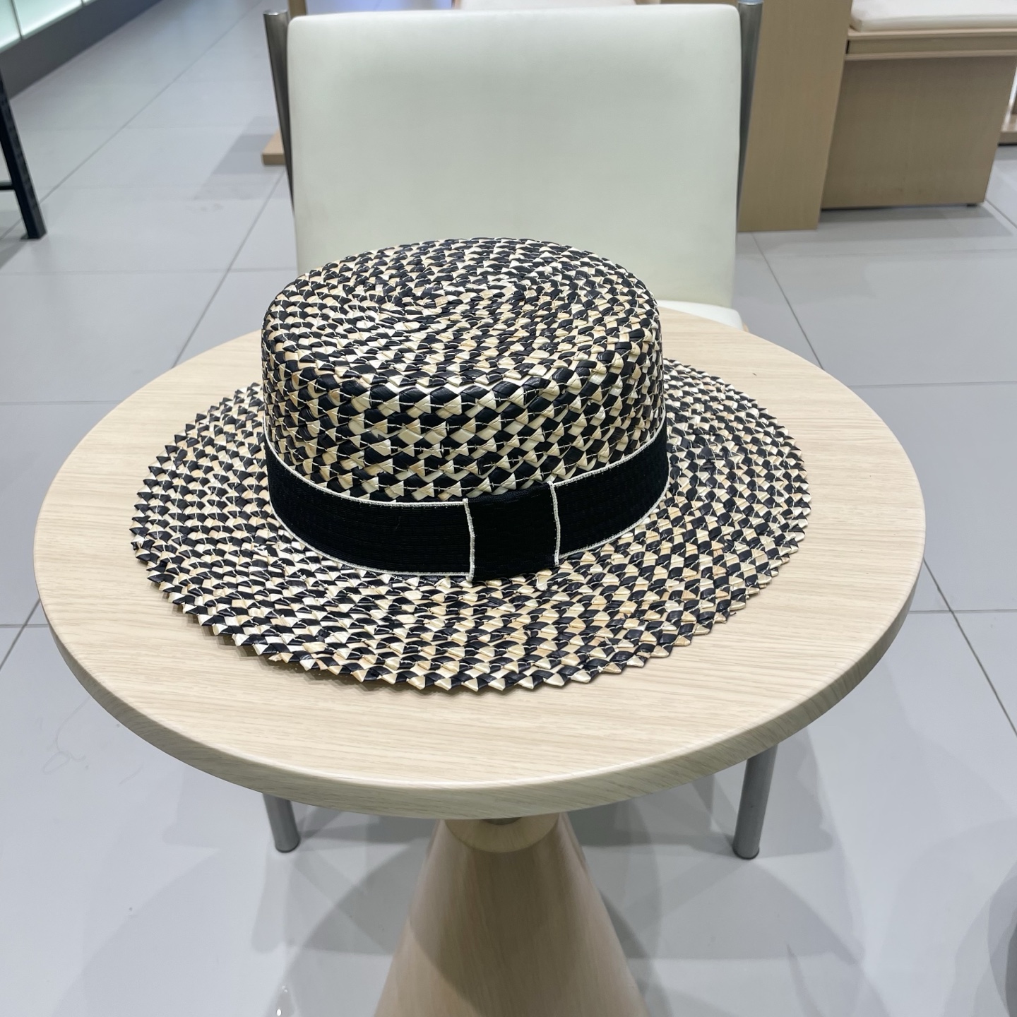 Chanel香奈儿跨境新款菠萝花麦秆草帽黑边草帽夏季凹造型防晒帽子女士平顶帽潮