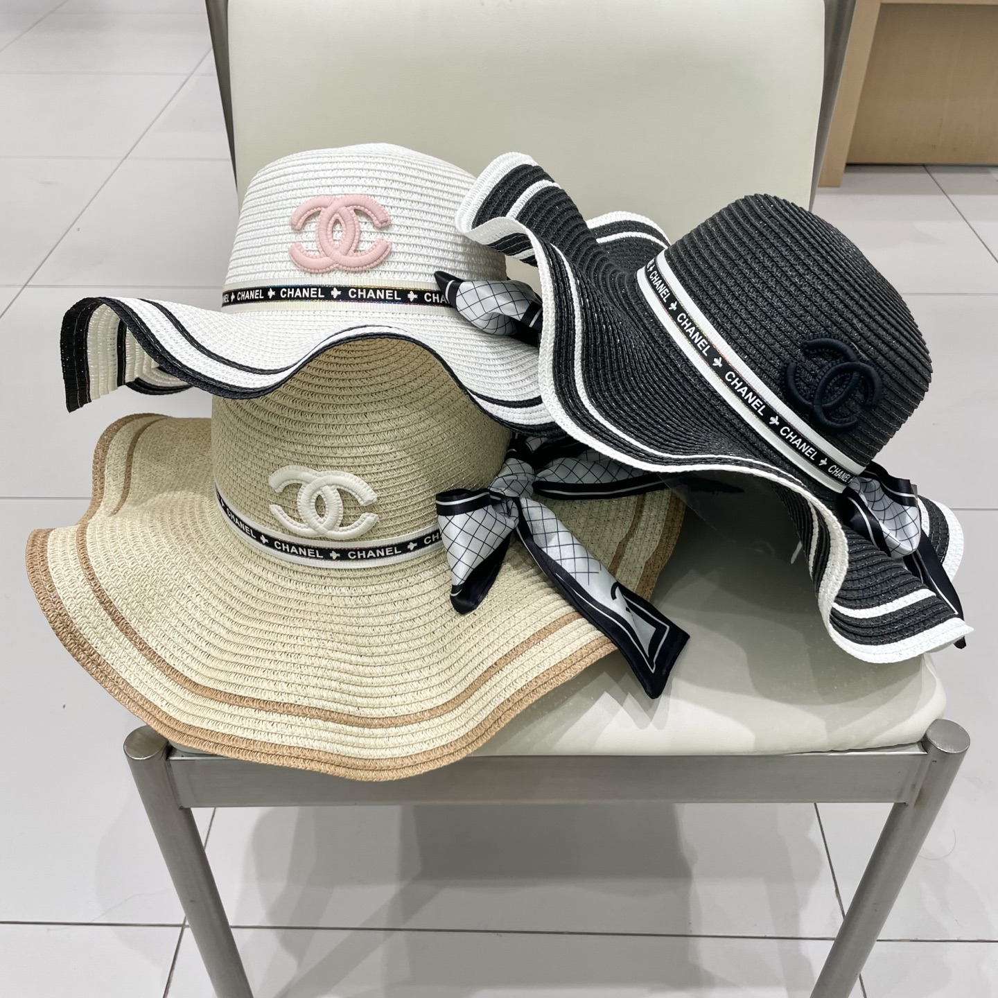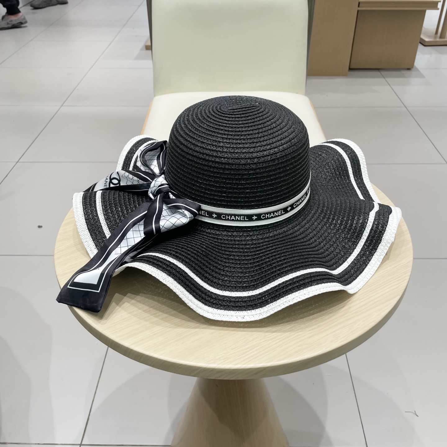 Chanel香奈儿遮阳帽波浪边草帽