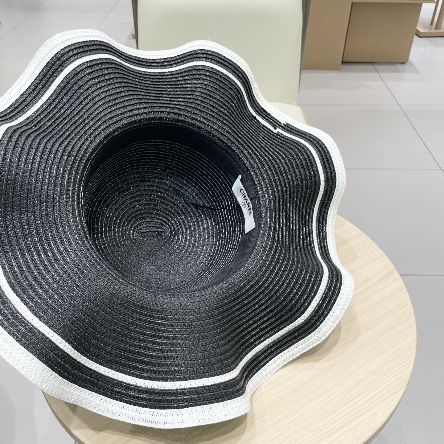 Chanel香奈儿遮阳帽,波浪边草帽,头围57cm