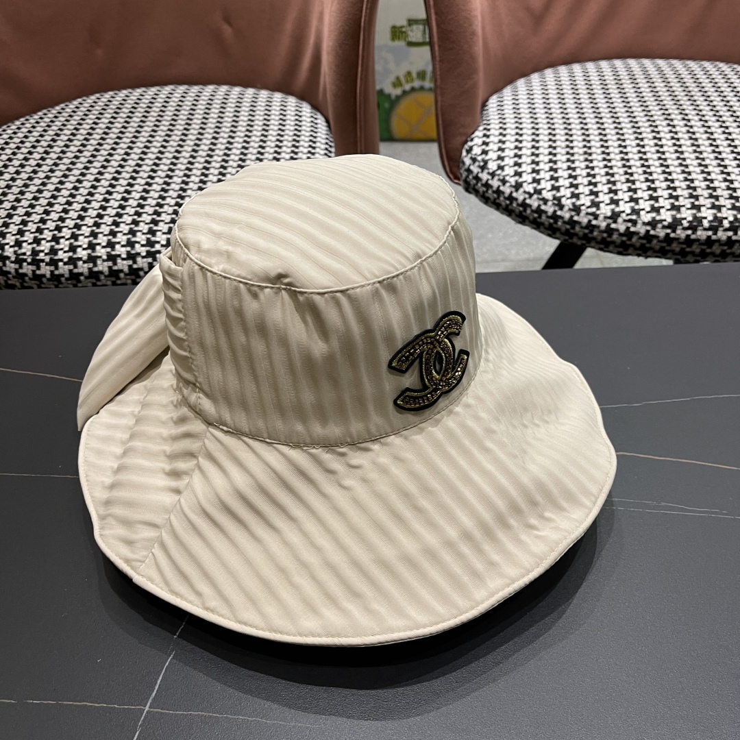 Chanel(香奈儿)2025夏季新款条纹蝴蝶结帽子女休闲百搭渔夫帽户