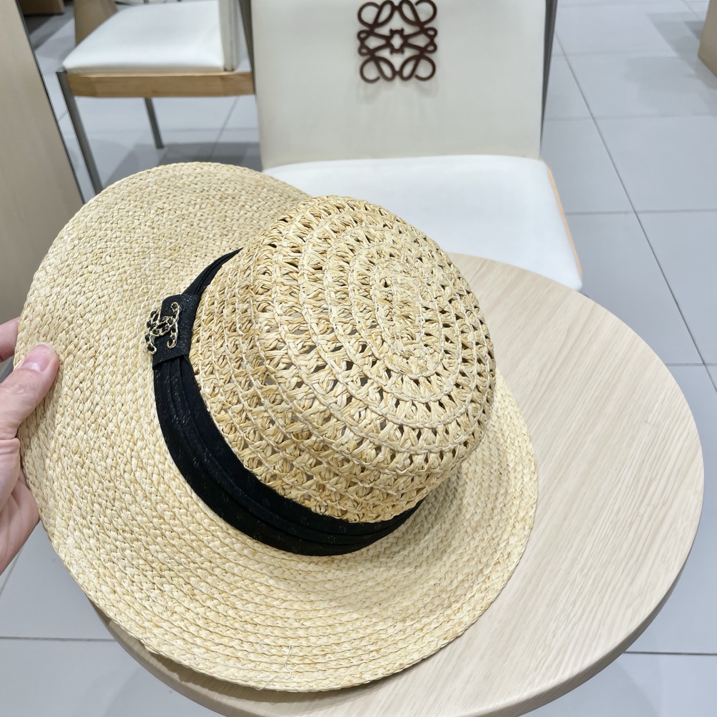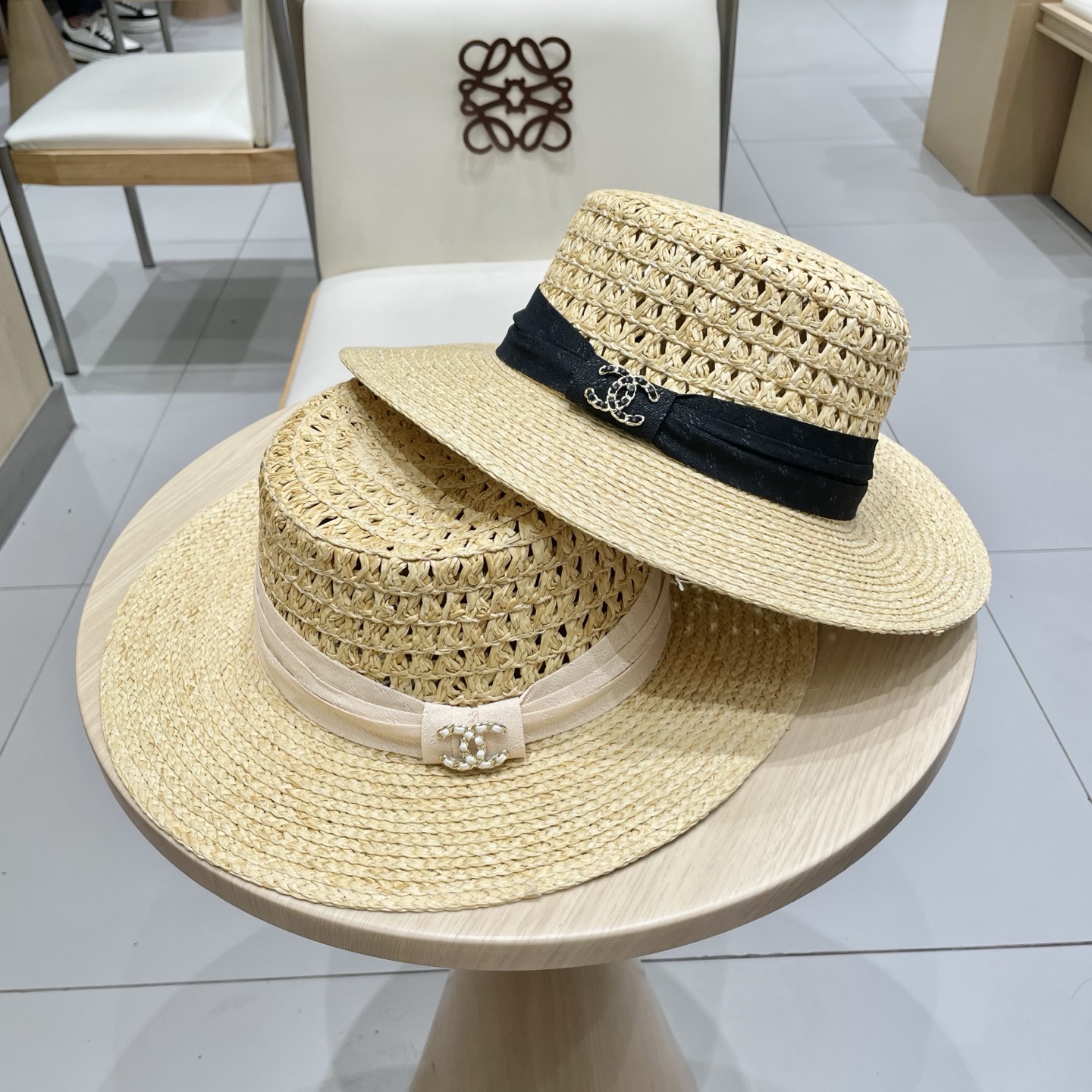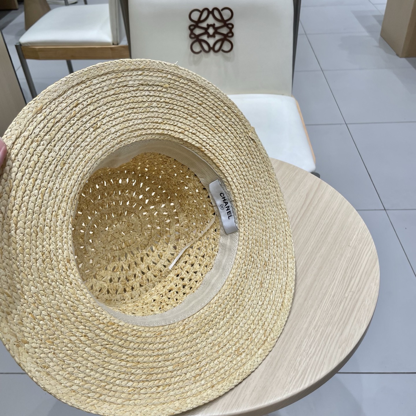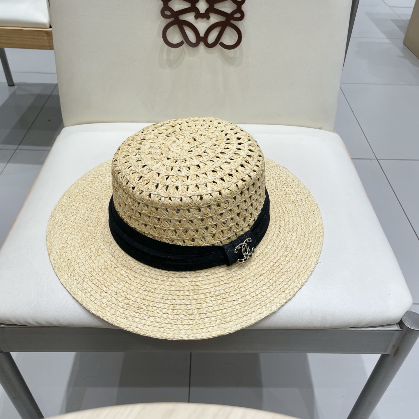 Chanel香奈儿2025新款镂空平顶草帽女夏草编遮阳防晒帽海边度假百搭大檐太阳帽