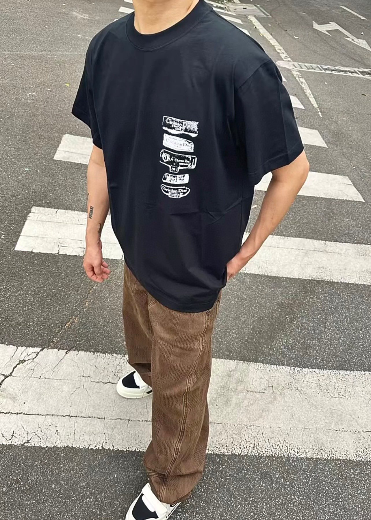 Christian Dior迪奥经典款 简笔画logo印花短袖 上身效果#