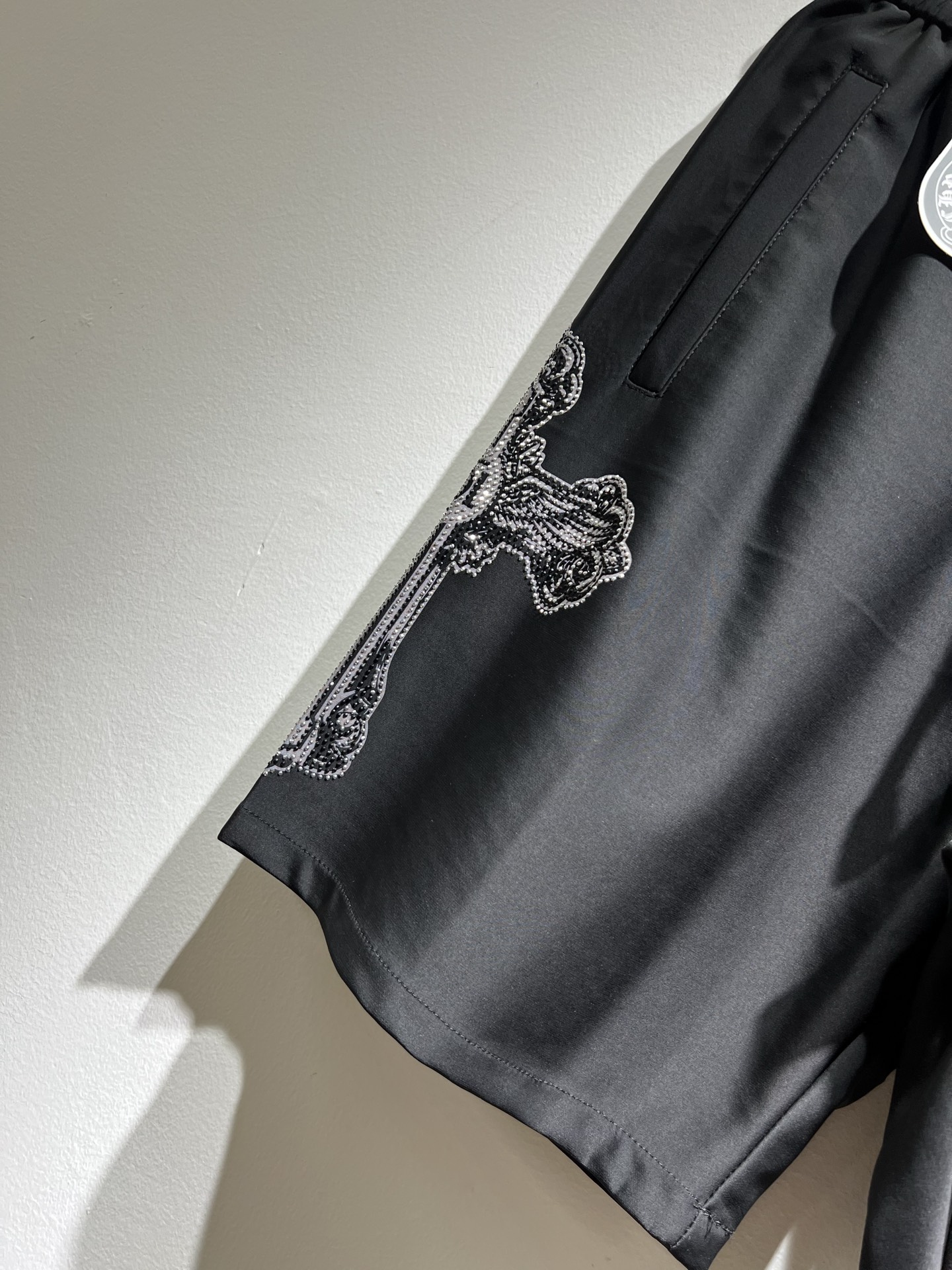 Chrome hear*s克*心 2025春夏新款休闲短裤!男女同款一款让你从心底认可的休闲裤,并且经过时间的推移而让你更加珍稀,潮流的高街之王,那就是潮牌chrome hear*s克*心,穿克罗心的实话讲很潮了,那就是潮爆了,潮爆街头没话说。定制原版洗水纯棉材质制成,面料手感一绝,这种舒适感穿在身上,上身真心不挑人,休闲潇洒的味道特别足,提升时尚感和颜值,并且这样的裤型特别好搭配各种类型的鞋子。辨识度就在哪里,设计裤腿logo烫钻设计!韧性足,不易磨损,细节工艺非常到位。尺码:M-3XL
