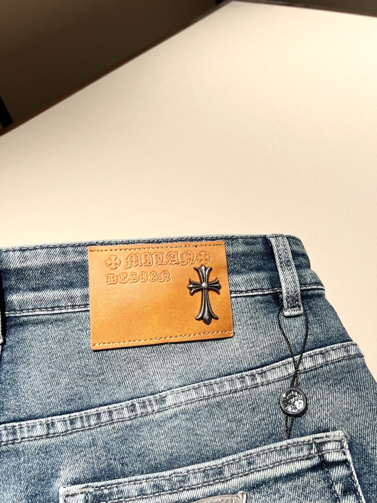 Chrome hear*s克*心 2025春夏新款牛仔裤!经典银饰辅料系列!男女同款一款让你从心底认可的休闲裤,并且经过时间的推移而让你更加珍稀,潮流的高街之王,那就是潮牌chrome hear*s克*心,穿克罗心的实话讲很潮了,如果连牛仔也一起搭配,那就是潮爆了,潮爆街头没话说。定制原版纯棉材质制成,面料手感一绝,这种舒适感穿在身上,上身真心不挑人,休闲潇洒的味道特别足,提升时尚感和颜值,并且这样的裤型特别好搭配各种类型的鞋子。辨识度就在哪里,皮革logo搭配设计!重工定制!韧性足,不易磨损,细节工艺非常到位。尺码:29-40
