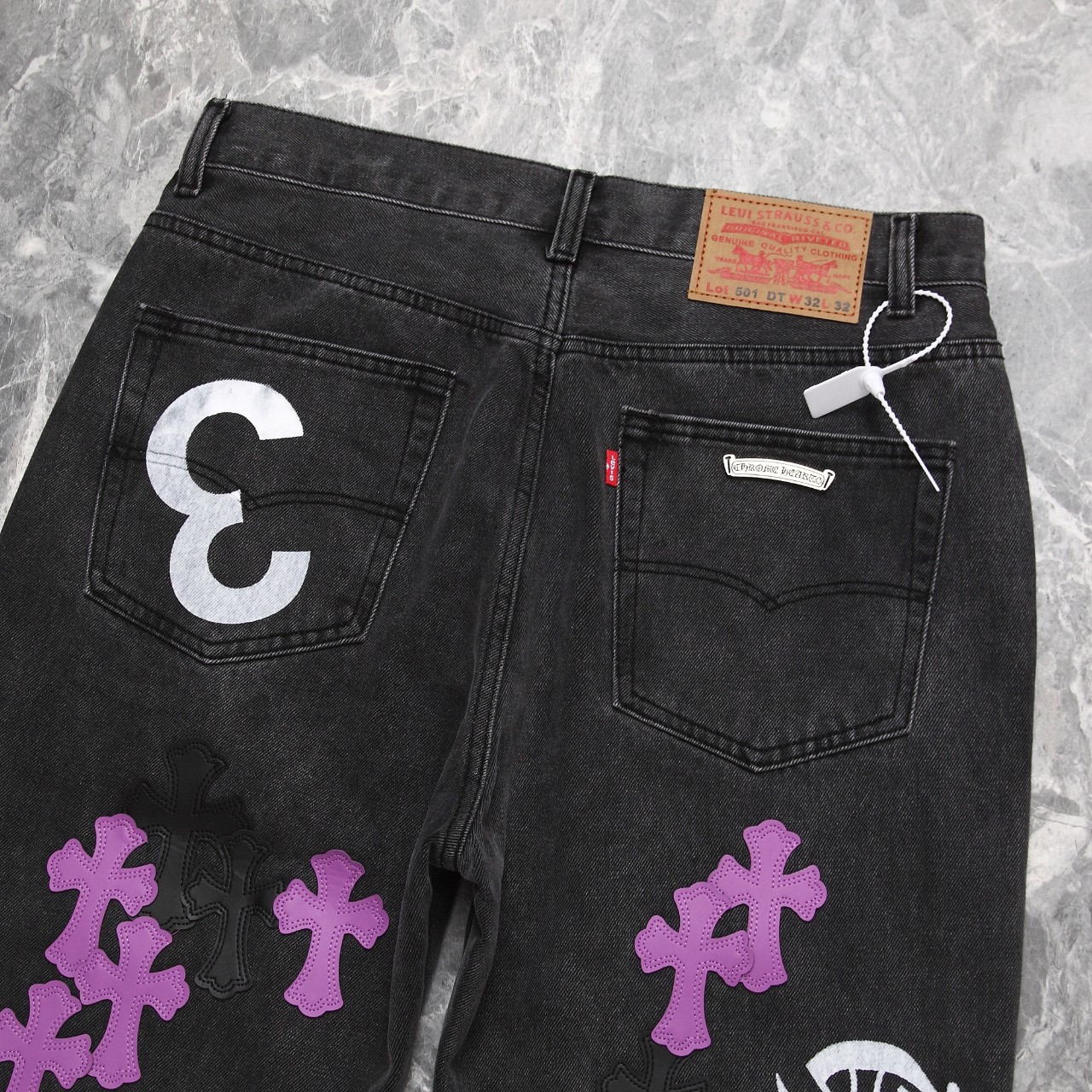 Chrome Hearts 克罗心 官方限定紫色牛王十字架牛仔裤 尺码:28.30.32.34.36.
