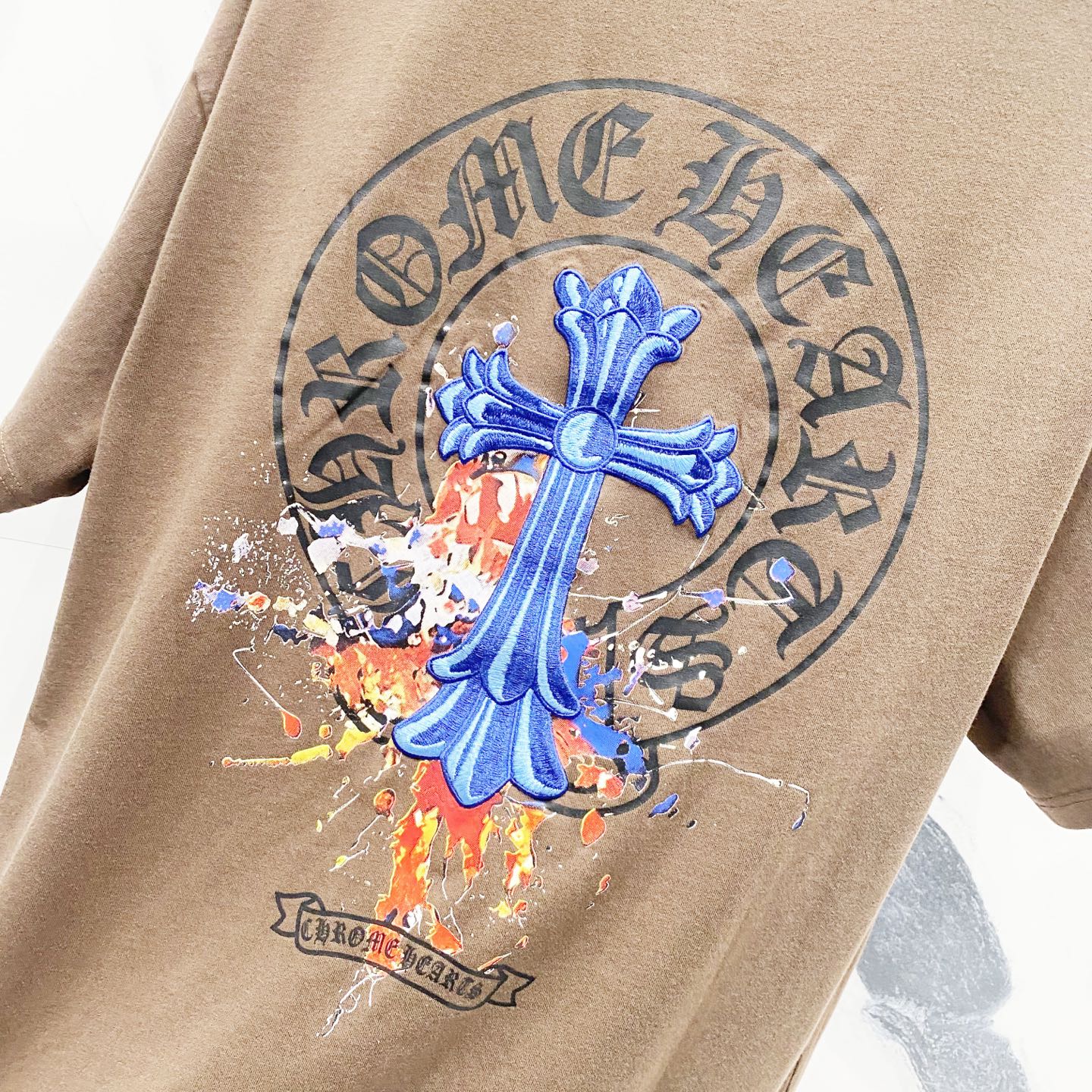 chrome hearts/克罗心320克洗水短袖 前后幅梵文LOGO十字架刺绣 工艺标识 官方同步 1:1原版开模 时尚个性 百搭潮流 纯原品质 原版洗水面料 吊牌 领标 水洗麦 三标齐全 颜色: 黑色.粉色.灰色.棕色. 尺码:XS-L