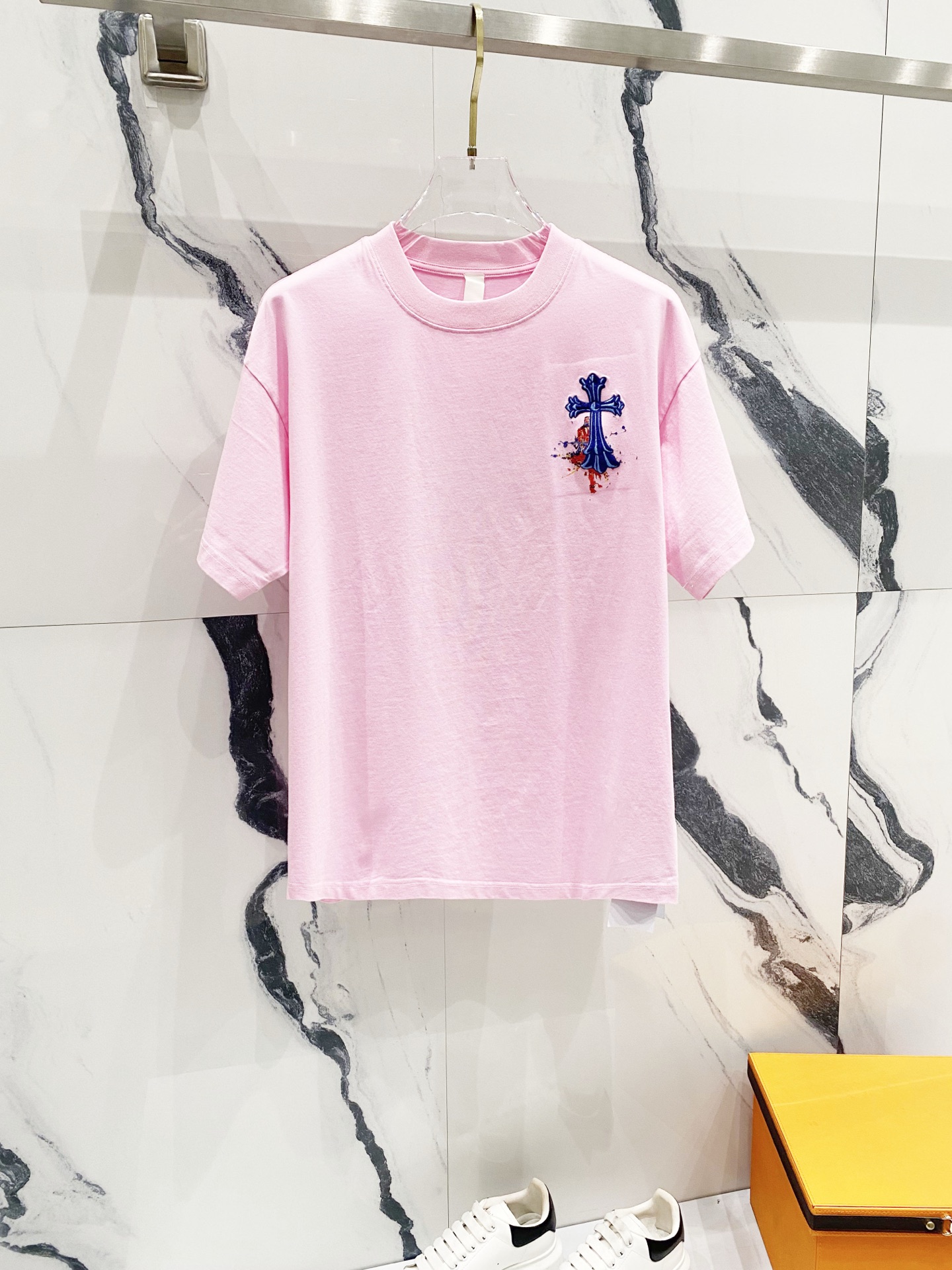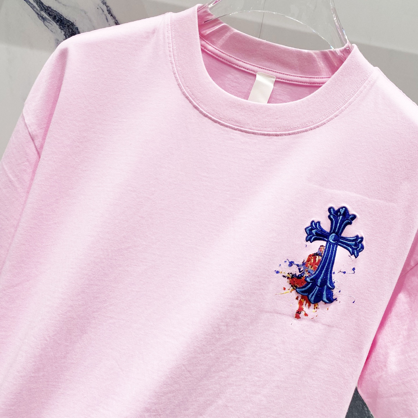 chrome hearts/克罗心320克洗水短袖 前后幅梵文LOGO十字架刺绣 工艺标识 官方同步 1:1原版开模 时尚个性 百搭潮流 纯原品质 原版洗水面料 吊牌 领标 水洗麦 三标齐全 颜色: 黑色.粉色.灰色.棕色. 尺码:XS-L