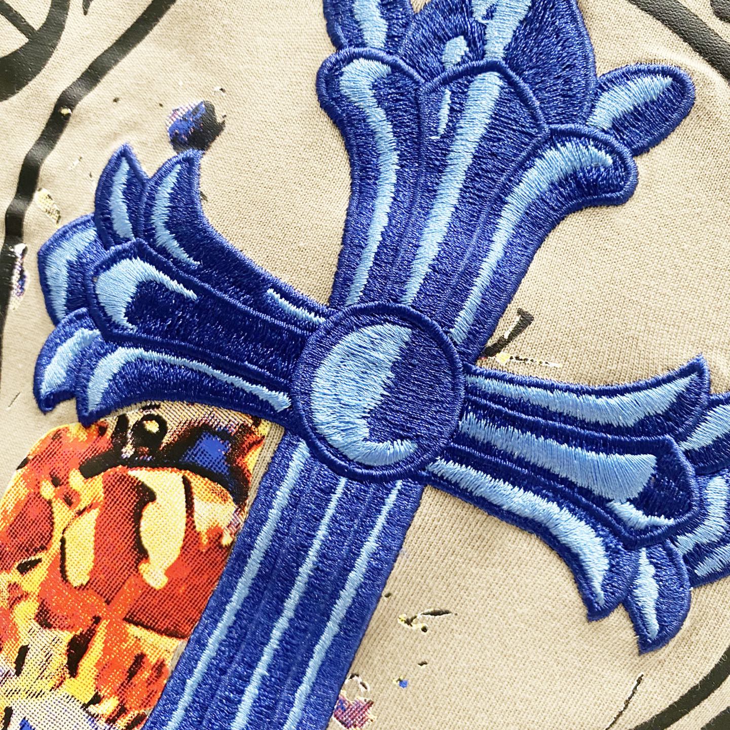 前后幅梵文LOGO十字架刺绣 工艺标识