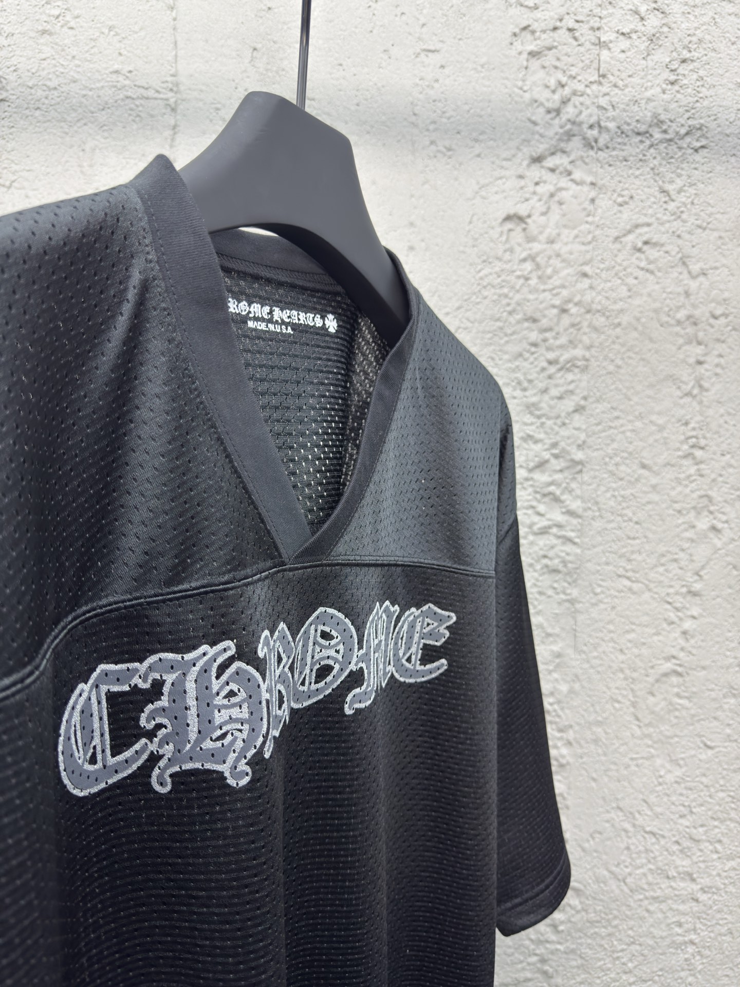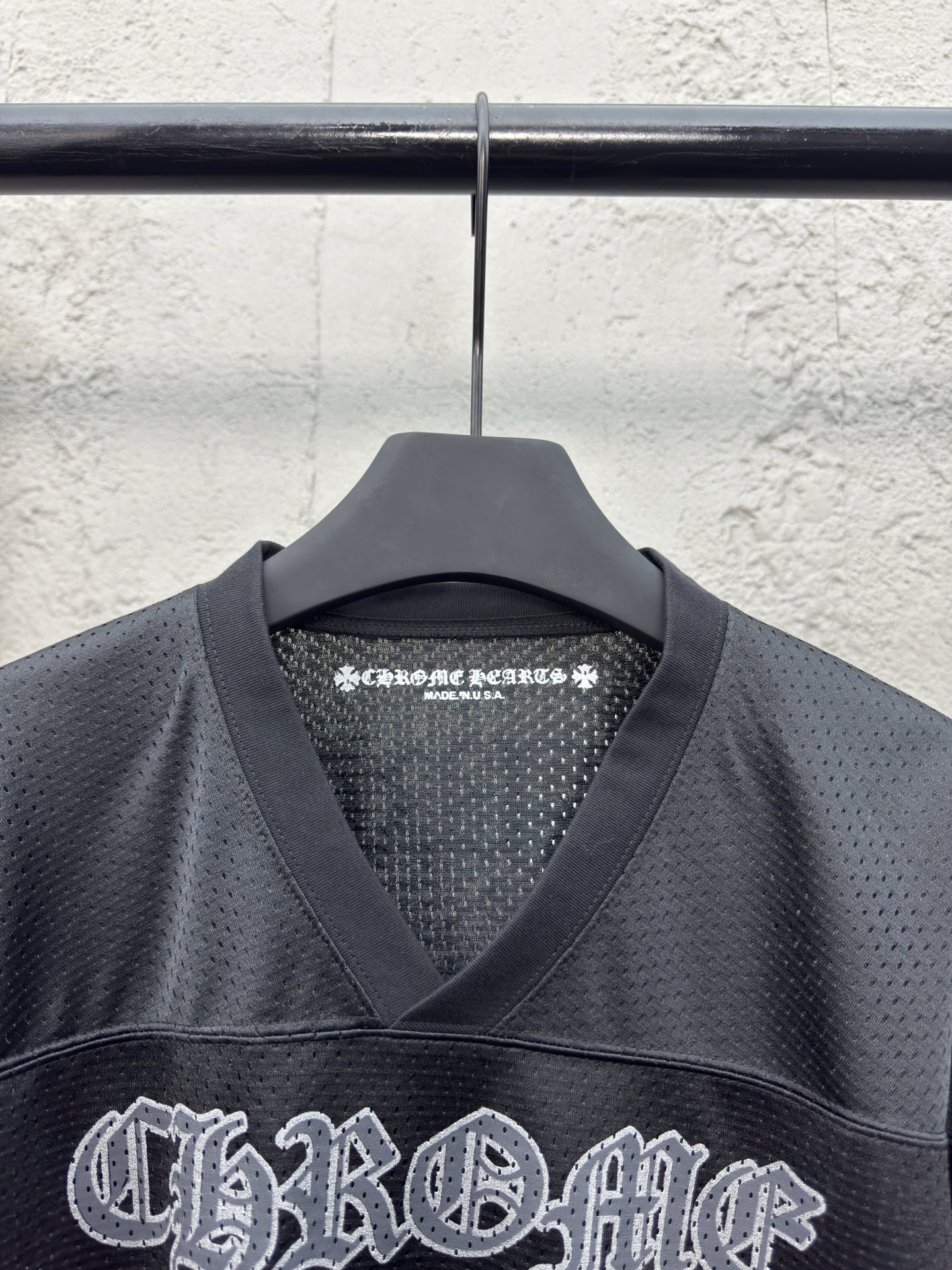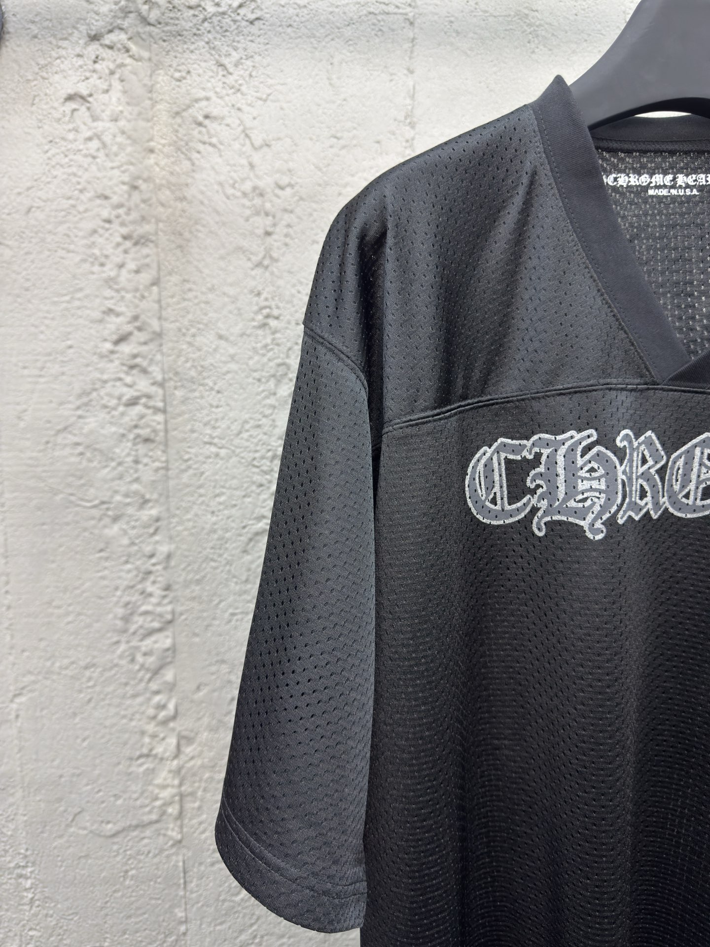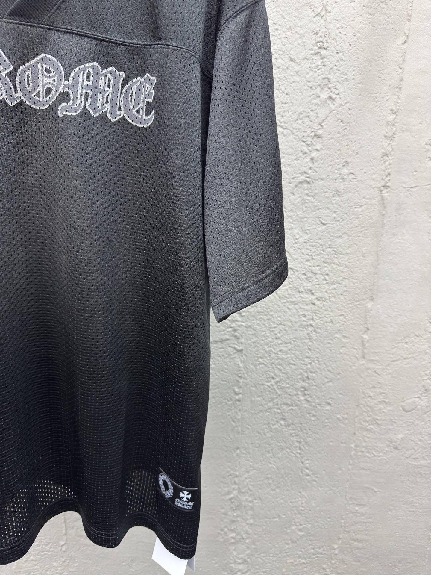 Chrome Hearts 闪粉冰球服短袖 工艺说明:面料采用高密100D鸟眼布,双面网眼定位非常耗时 人工损耗成本很高,整体走线平直细腻,面料舒适柔软,颜色一致无色差 能与同款搭配营造时尚造型,驾驭各种场合,定制辅料,三标齐全,男女同款! ⚠️颜色:黑色 ⚠️Size:S/M/L