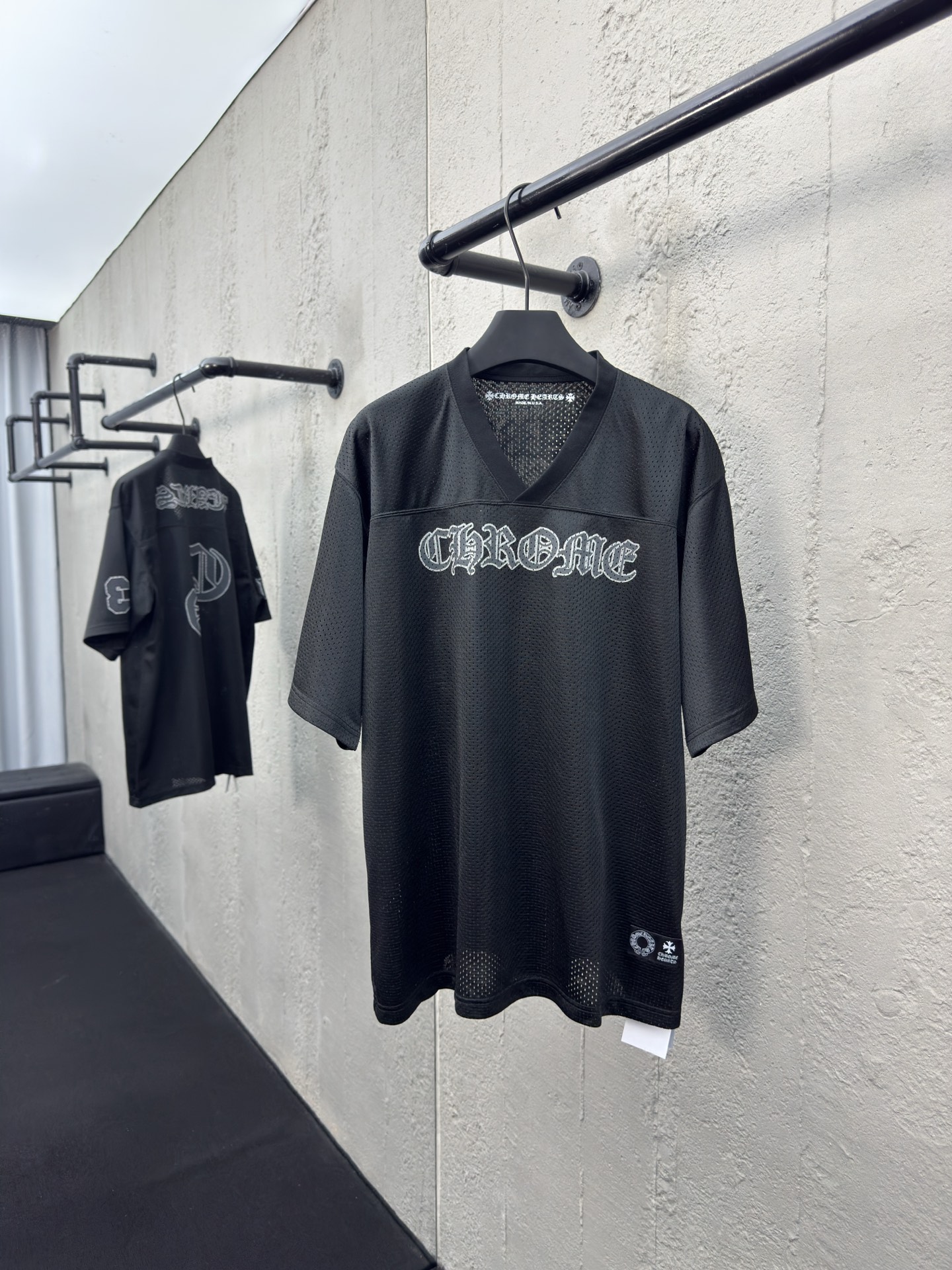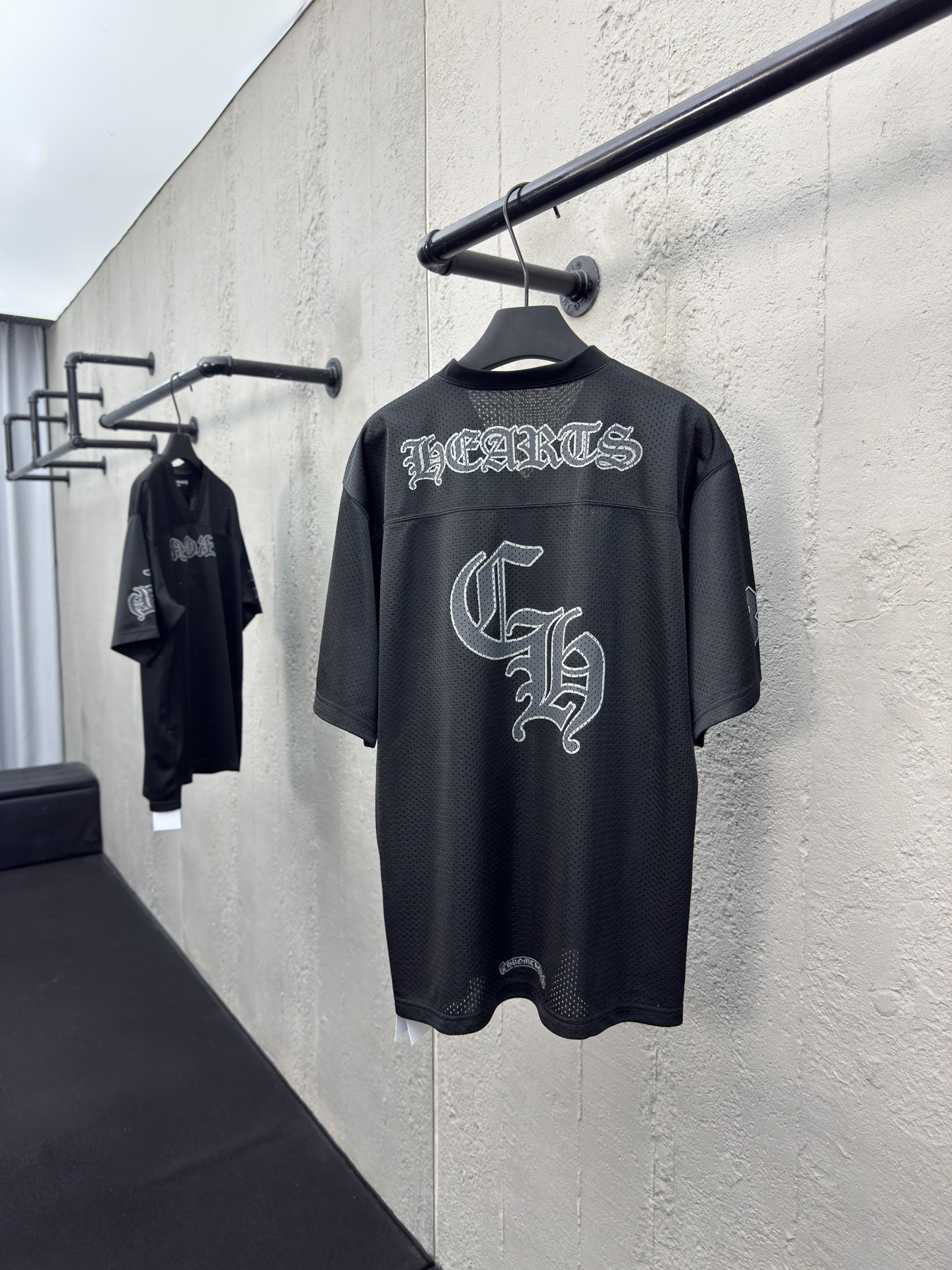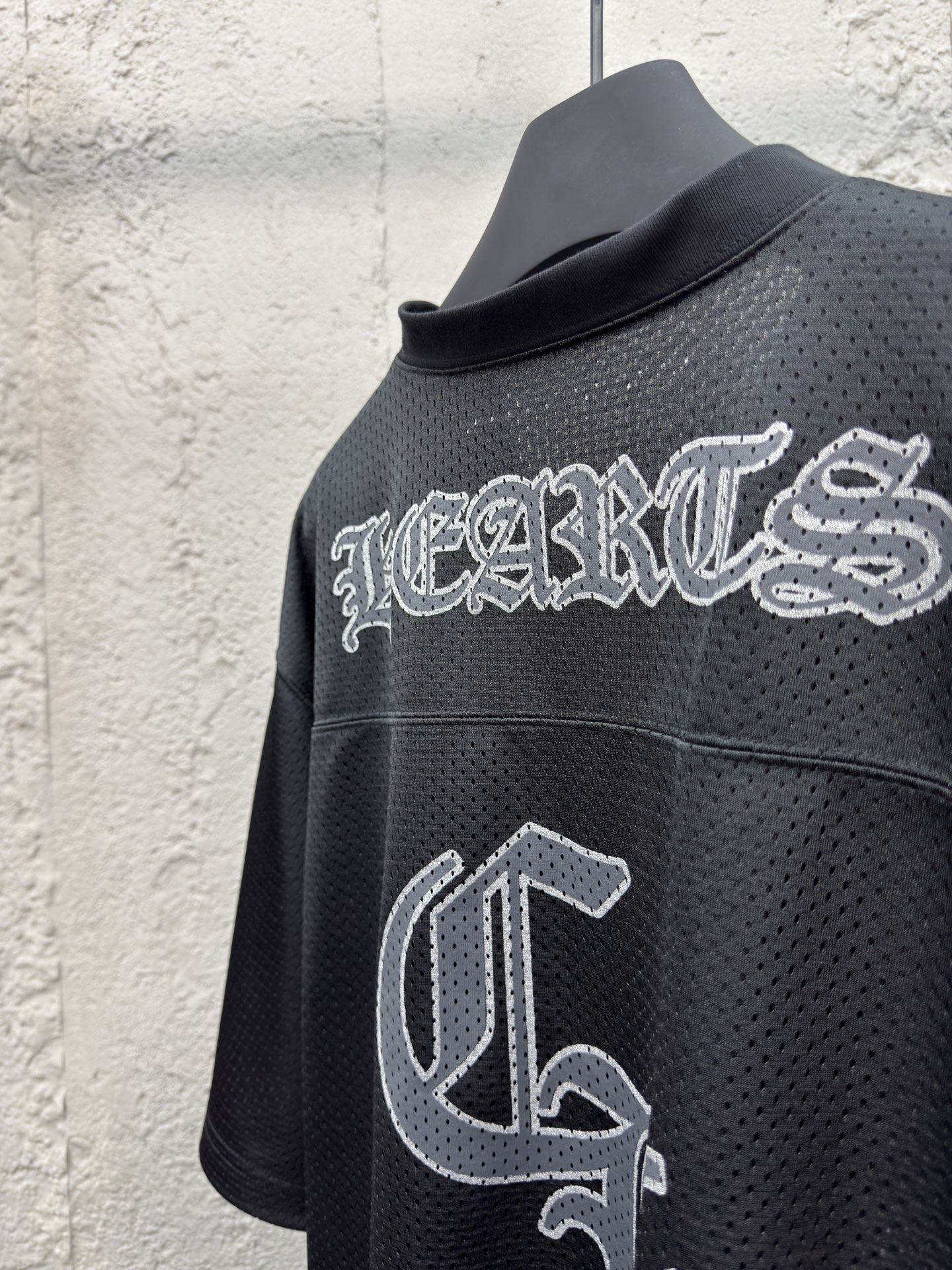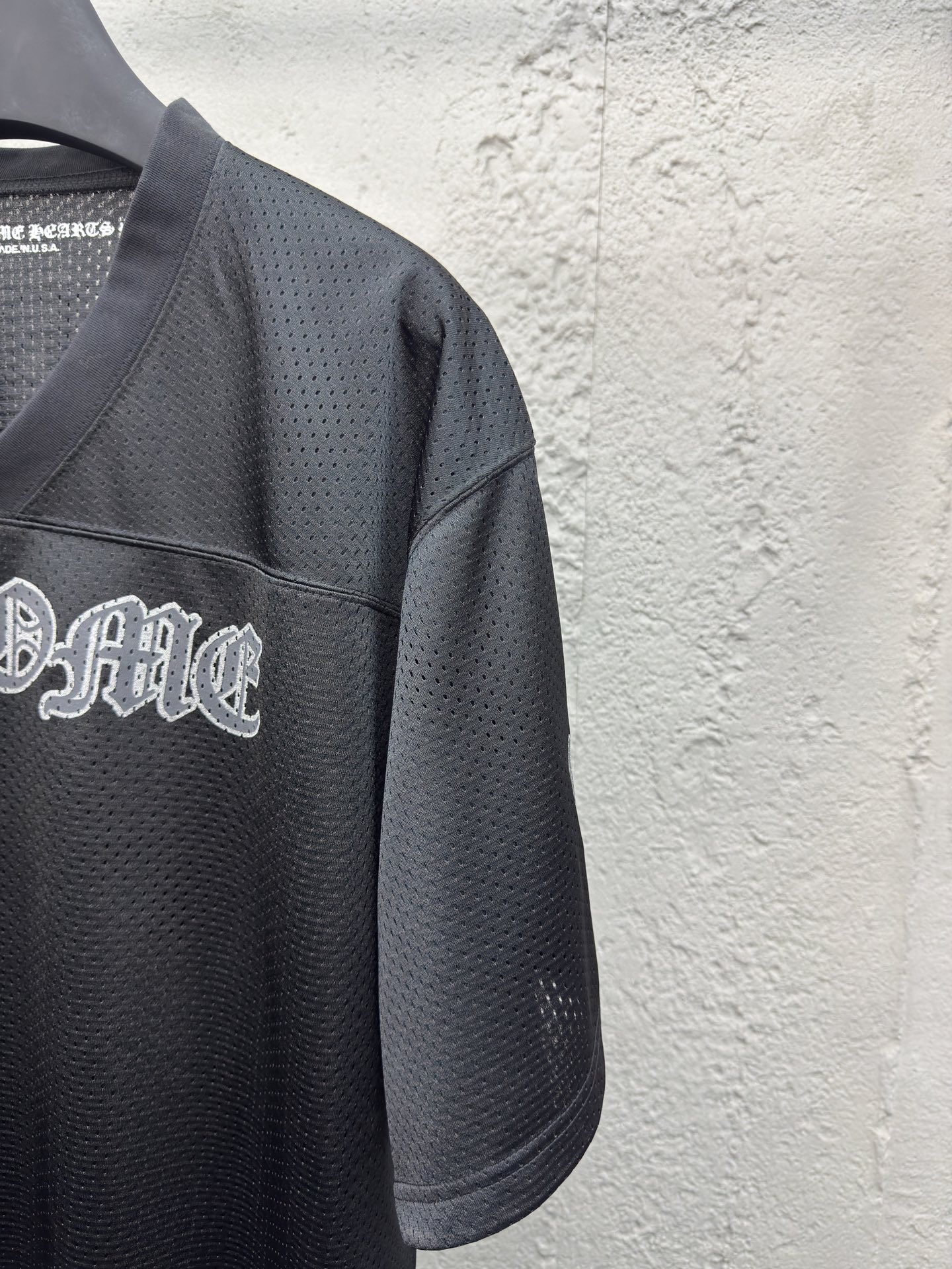 Chrome Hearts 闪粉冰球服短袖 工艺说明:面料采用高密100D鸟眼布,双面网眼定位非常耗时 人工损耗成本很高,整体走线平直细腻,面料舒适柔软,颜色一致无色差 能与同款搭配营造时尚造型,驾驭各种场合,定制辅料,三标齐全,男女同款! ⚠️颜色:黑色 ⚠️Size:S/M/L