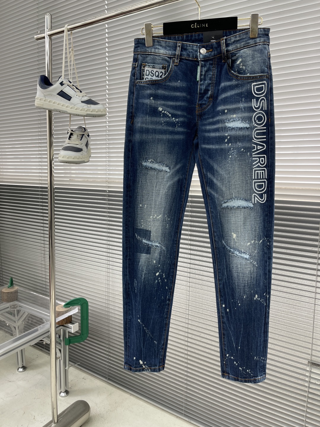 -D2 DSQ2刺绣磨破洗水工艺,秋冬搭配尽显时尚潮流,弹力修身小直筒牛仔裤