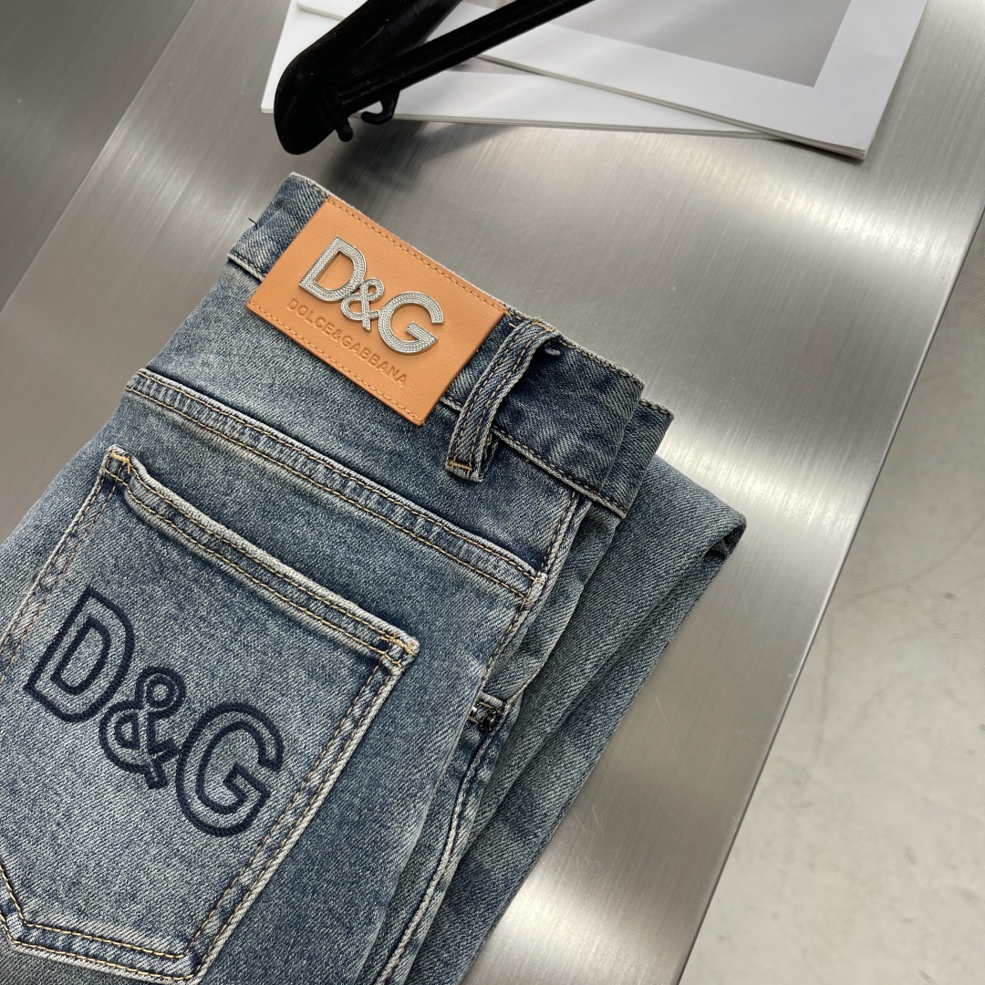 -DG 25SS春季新款牛仔裤 面料带弹力 经典牛仔色 后口袋字母刺绣品牌字母logo 时尚潮流必备单品 单色 码数:29-38( ️37)fh30
