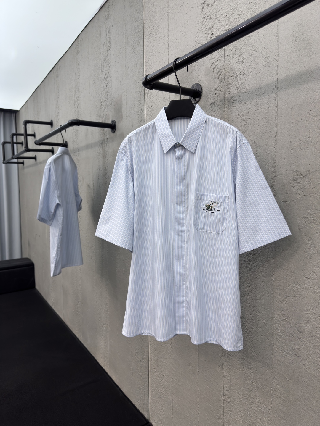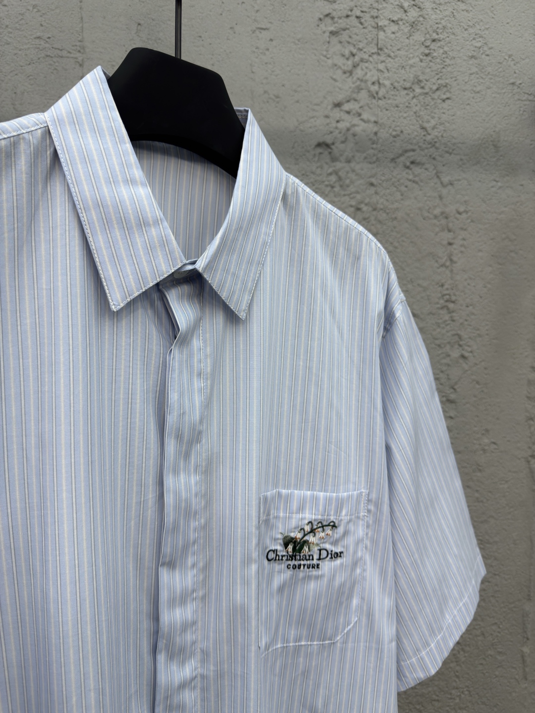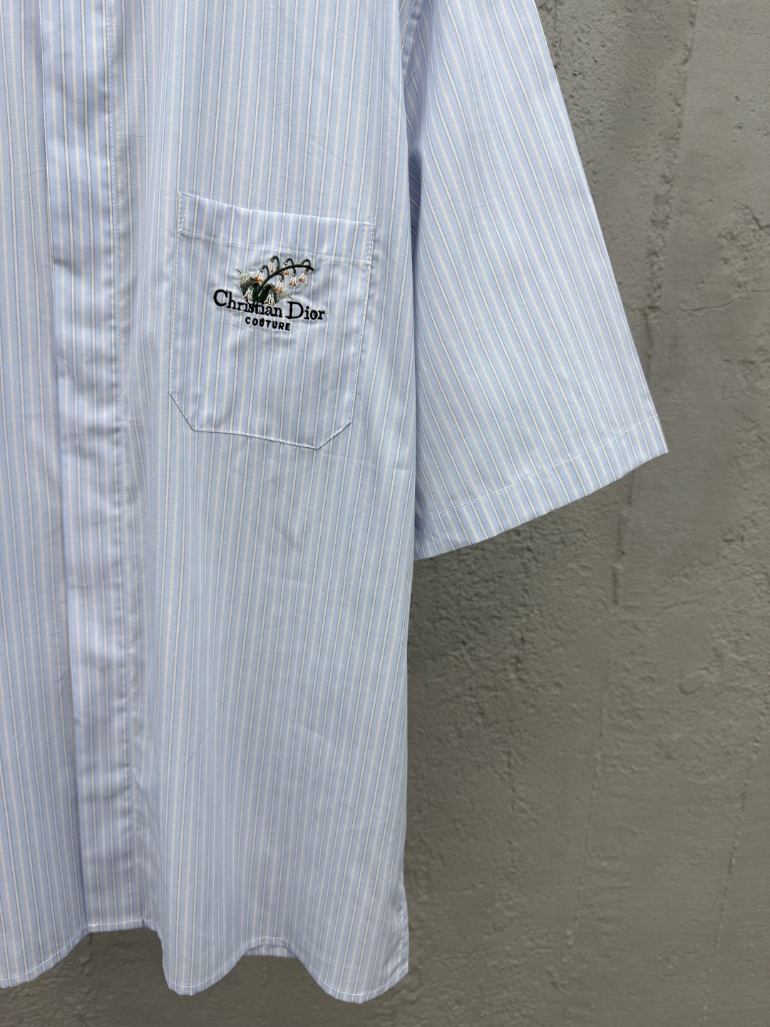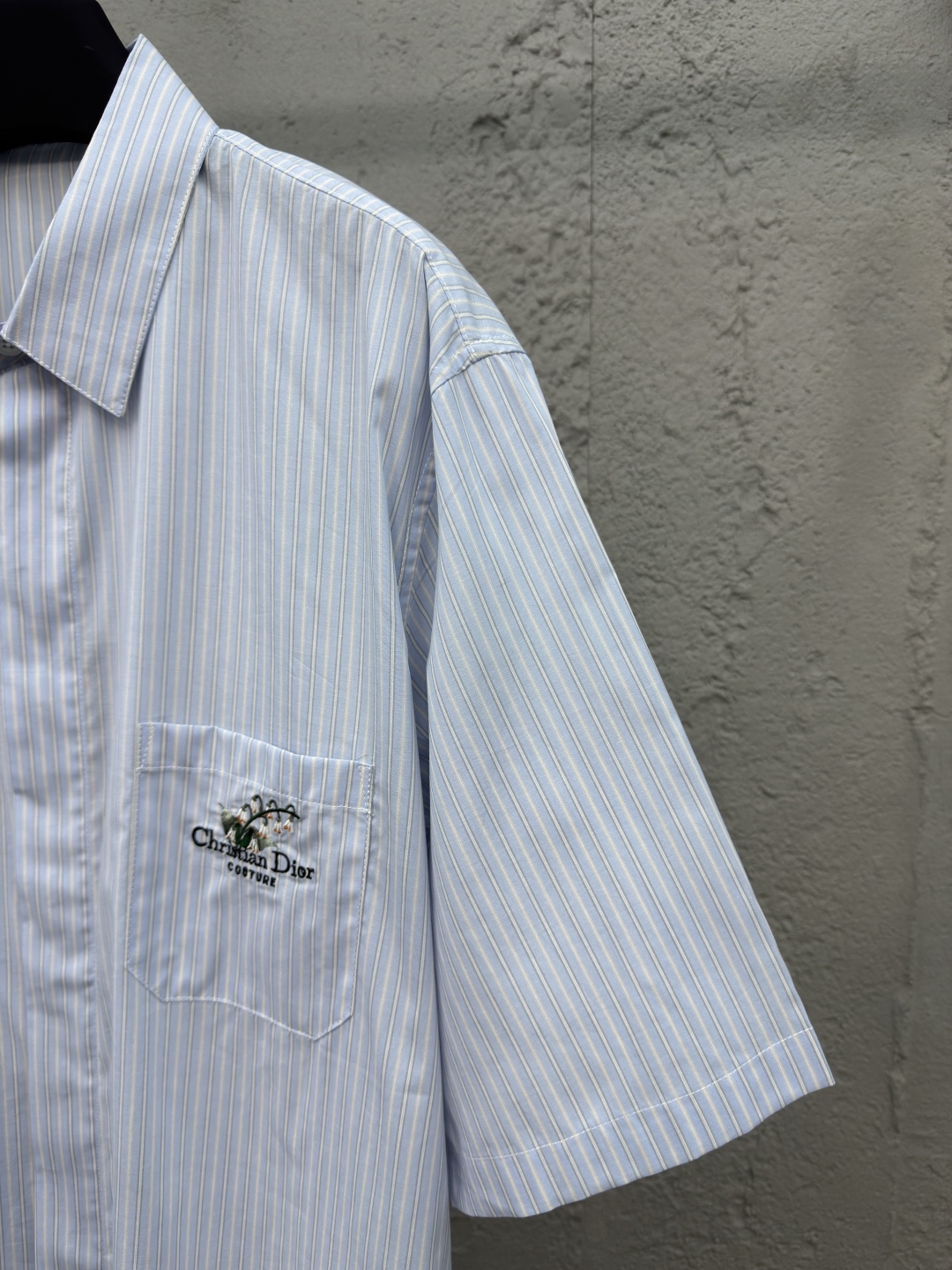 DIOR 口袋铃兰花刺绣短袖衬衫 工艺说明:采用高密丝稠衬衫料,面料舒适柔软,亲肤透气,前胸饰以贴布口袋点缀签名铃兰花刺绣,直筒版型剪裁,整体走线平直细腻,面料舒适柔软,颜色一致无色差 能与同款搭配营造时尚造型,驾驭各种场合,定制辅料,三标齐全,男女同款! ⚠️颜色:蓝色 ⚠️Size:39/40/41/42