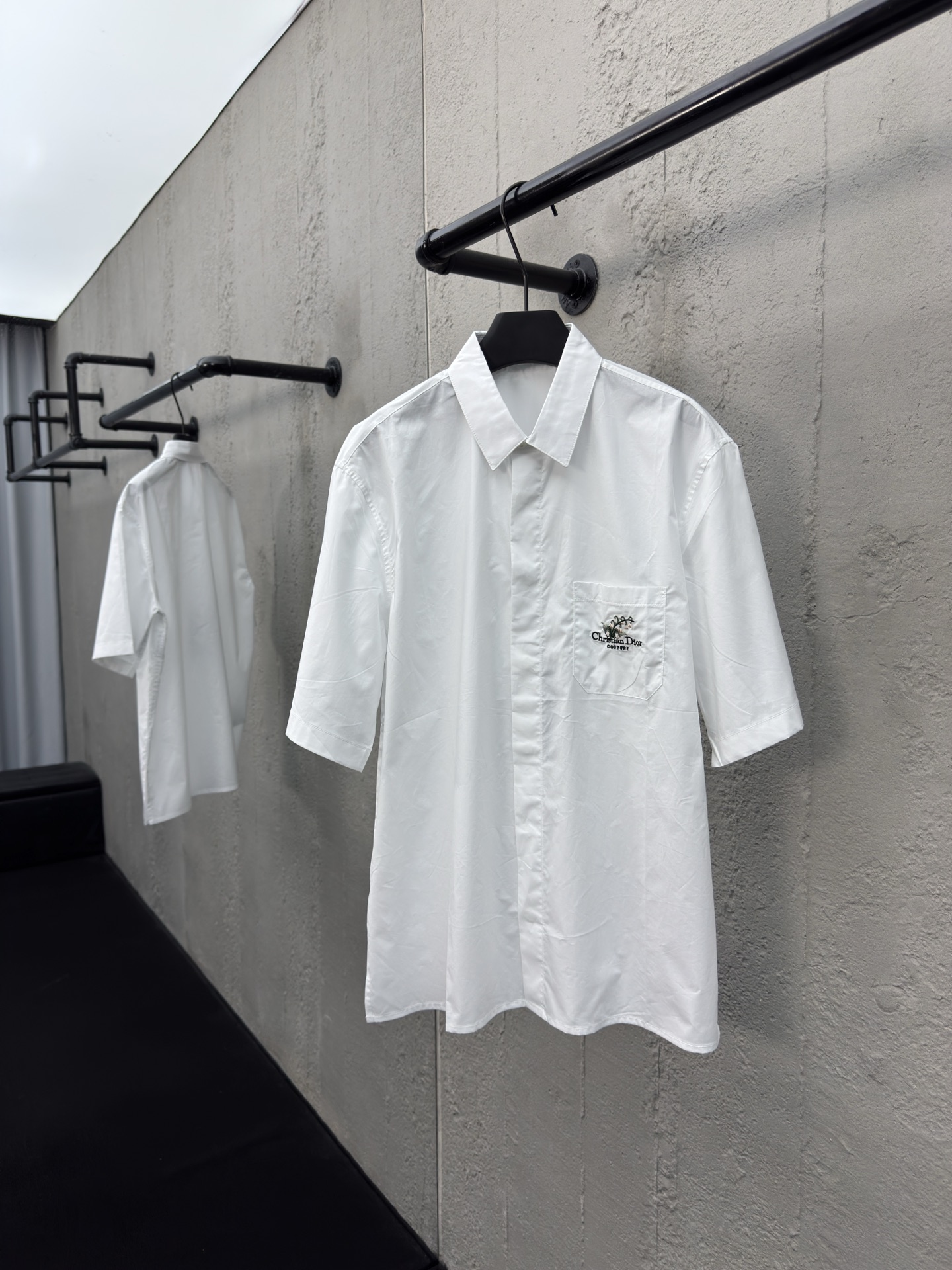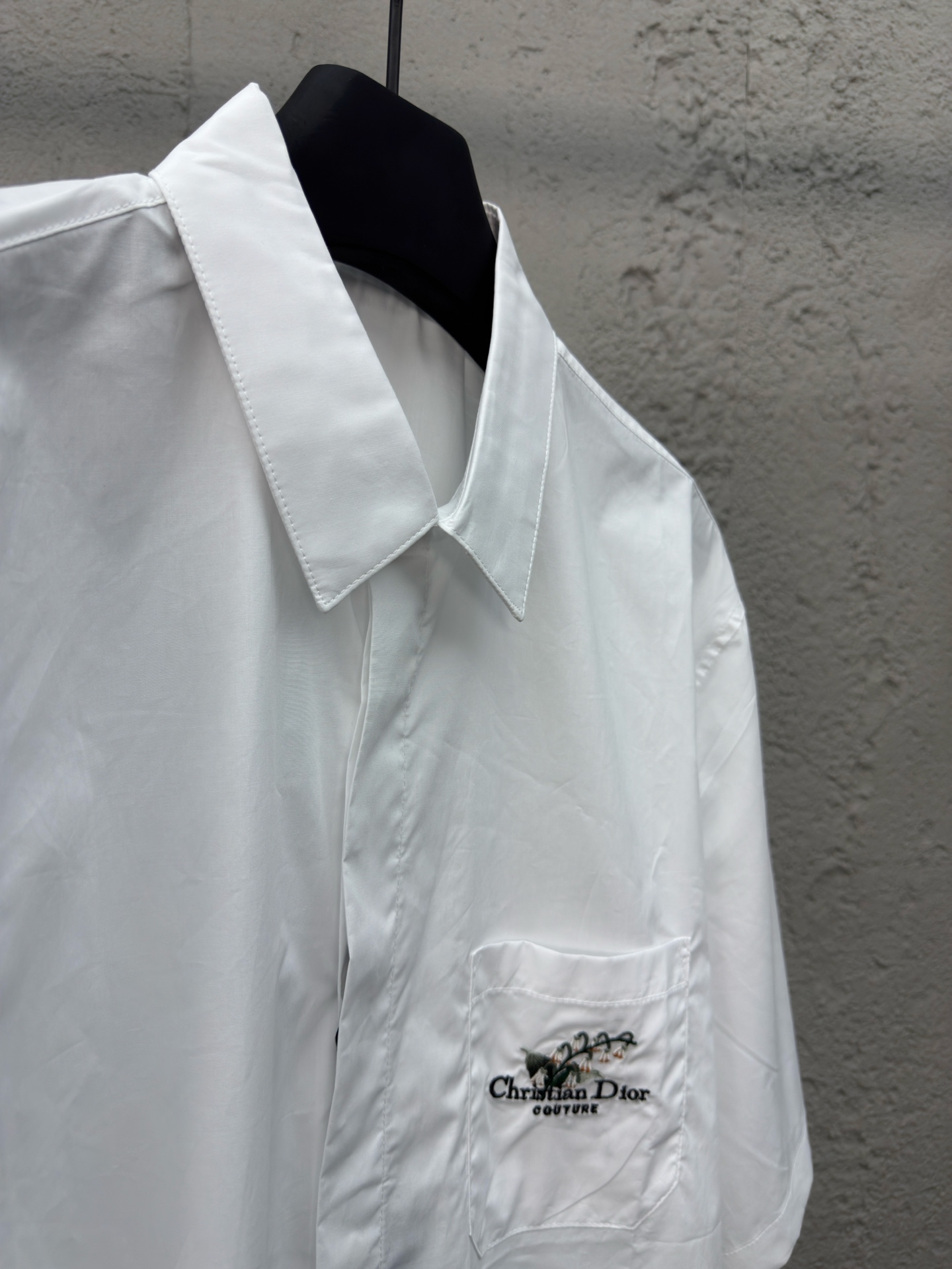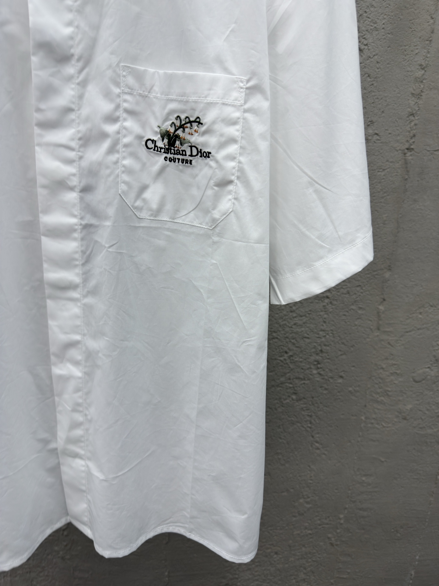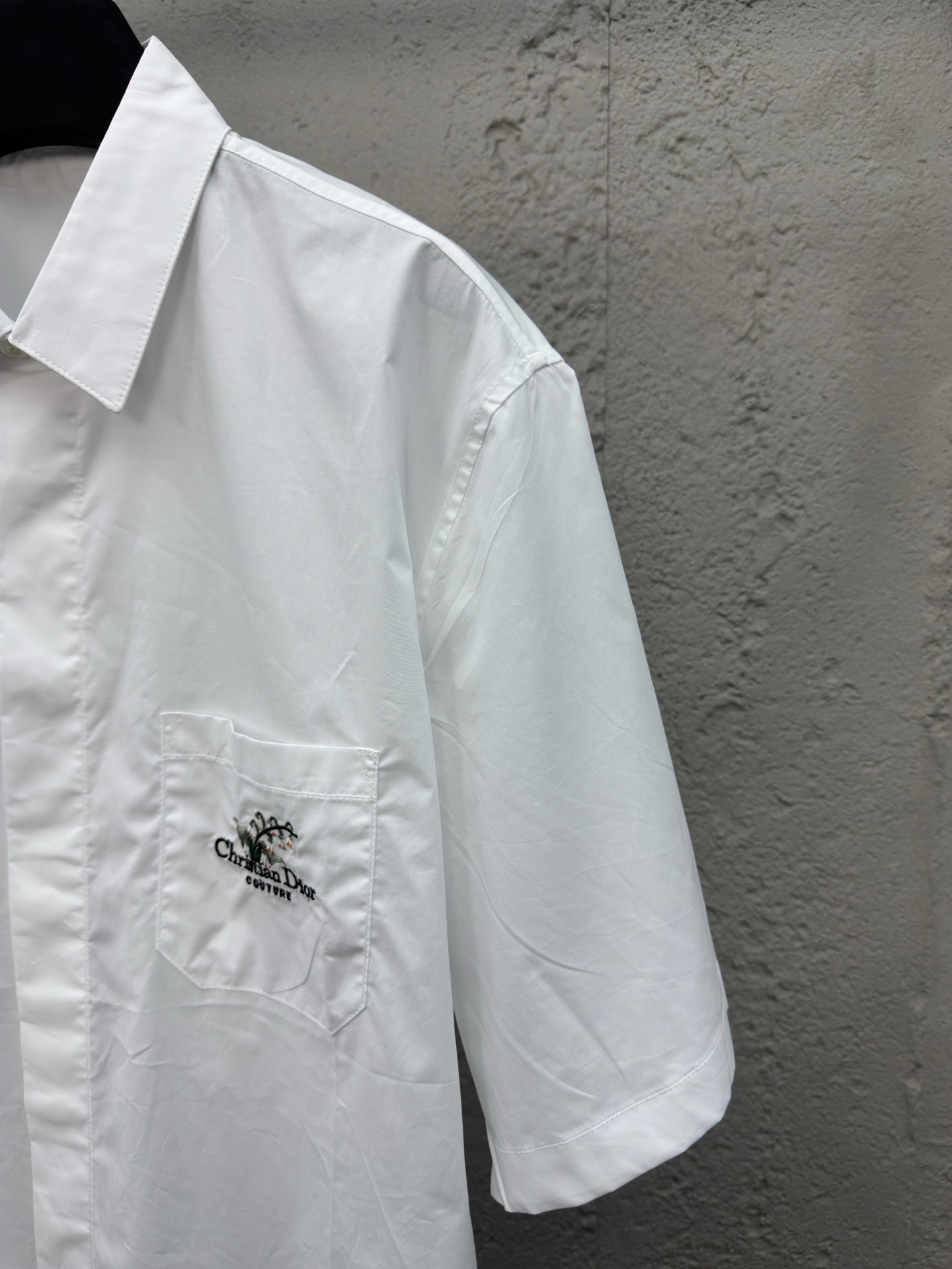 DIOR 口袋铃兰花刺绣短袖衬衫 工艺说明:采用高密丝稠衬衫料,面料舒适柔软,亲肤透气,前胸饰以贴布口袋点缀签名铃兰花刺绣,直筒版型剪裁,整体走线平直细腻,面料舒适柔软,颜色一致无色差 能与同款搭配营造时尚造型,驾驭各种场合,定制辅料,三标齐全,男女同款! ⚠️颜色:白色 ⚠️Size:39/40/41/42