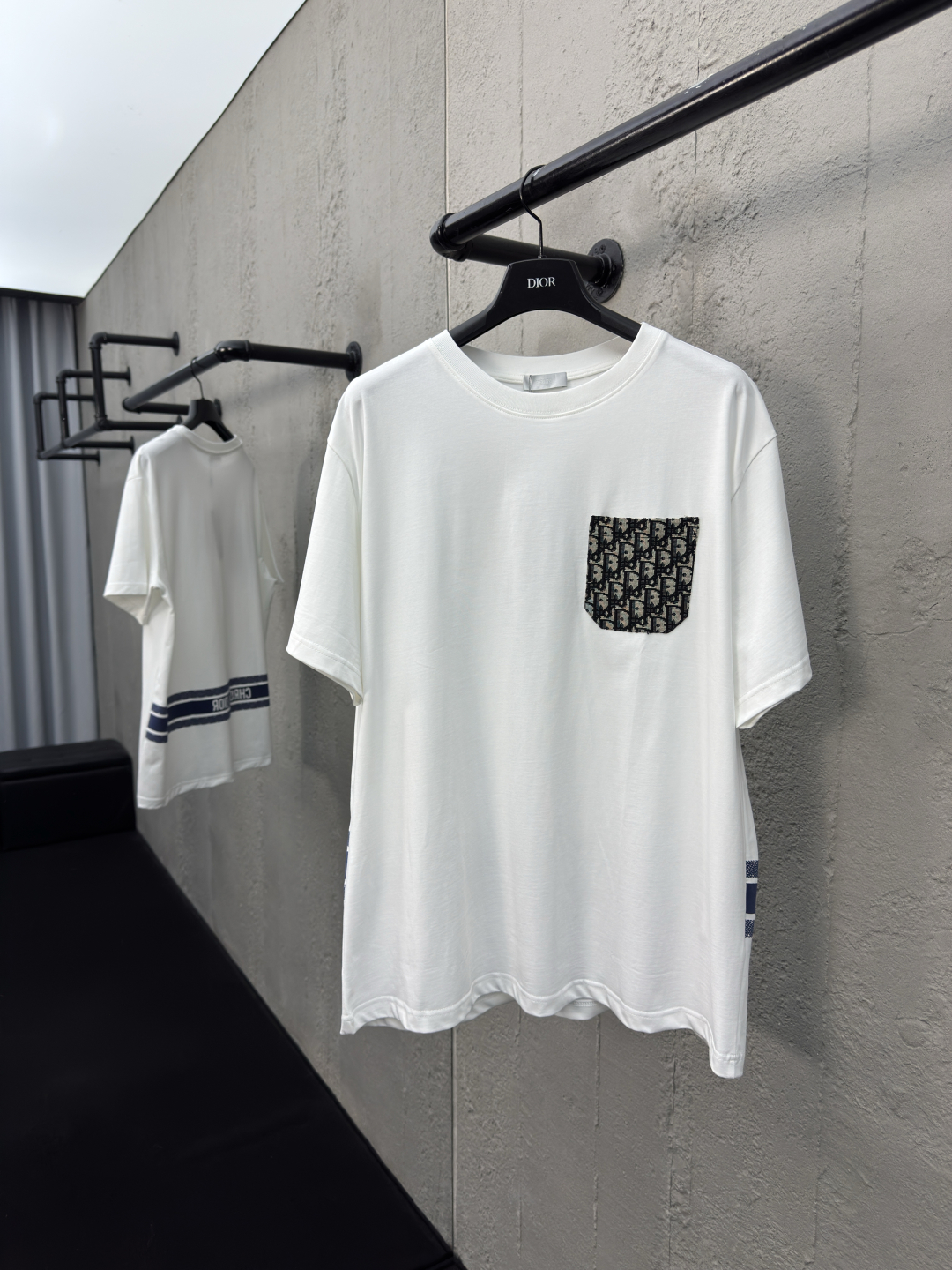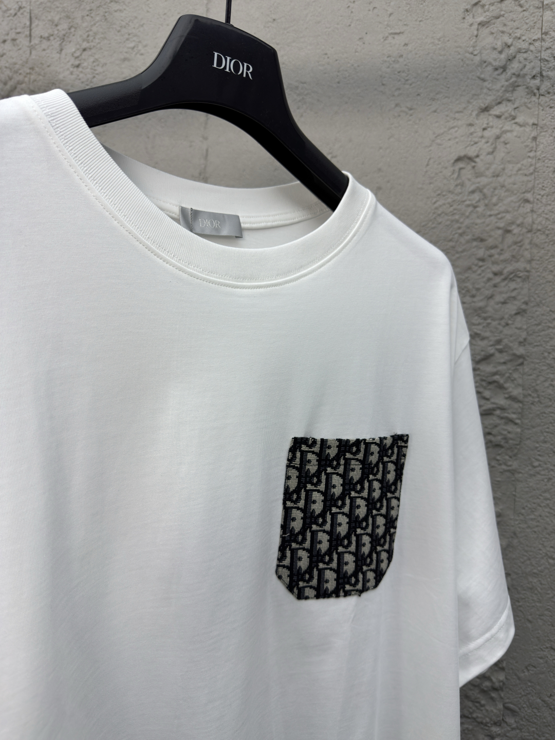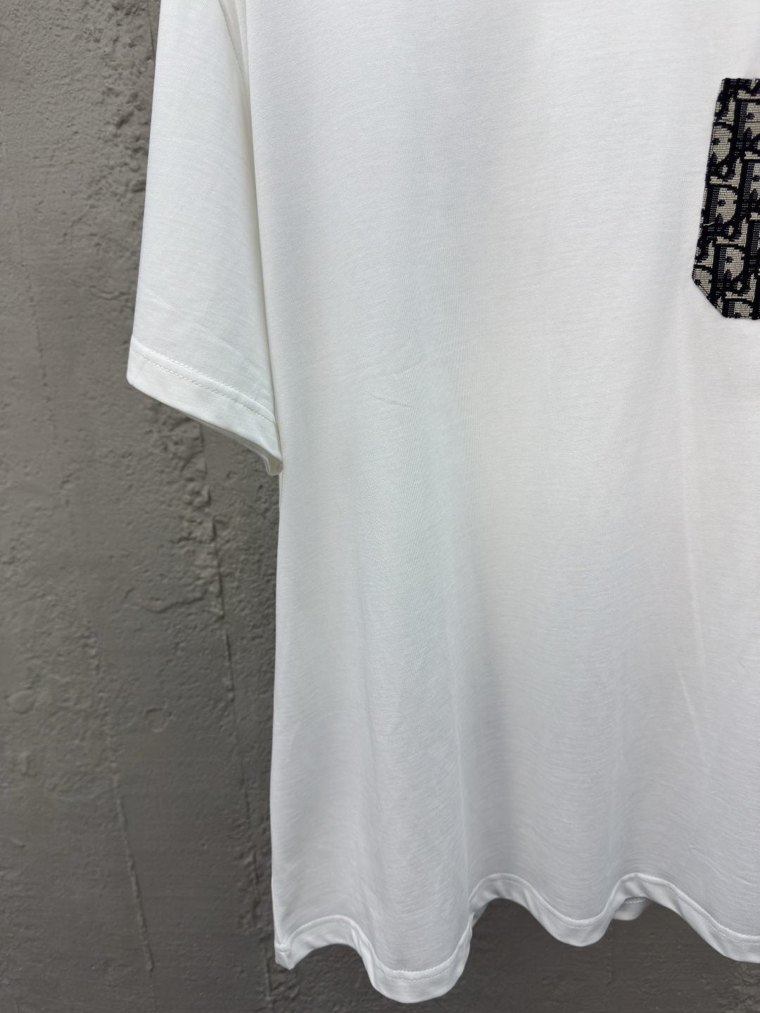 DIOR 老花提花口袋短袖 工艺说明:采用定制定染高克重原版面料,洗水完高达280g纯棉双纱面料,螺纹增加到2.7不变形,整体走线平直细腻,面料舒适柔软,颜色一致无色差 能与同款搭配营造时尚造型,驾驭各种场合,定制辅料,三标齐全,男女同款! ⚠️颜色:白色 ⚠️Size:XS/S/M/L