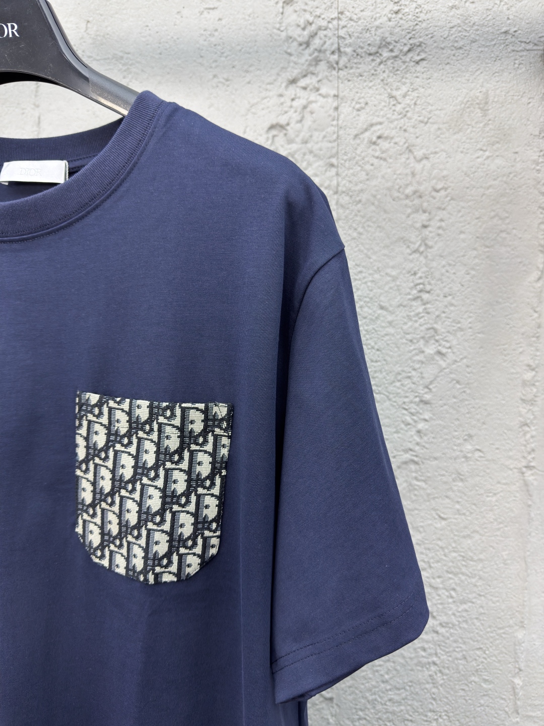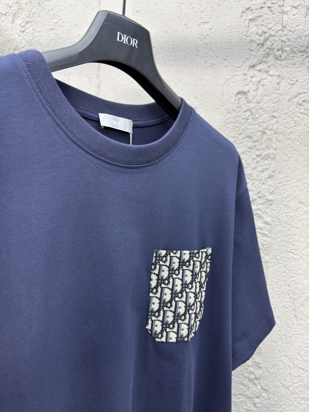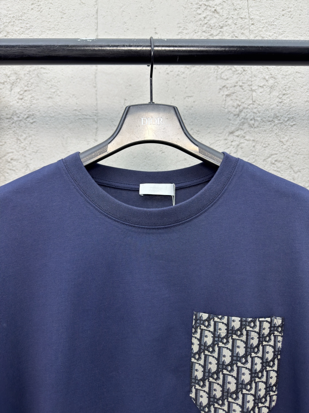 DIOR 老花提花口袋短袖 工艺说明:采用定制定染高克重原版面料,洗水完高达280g纯棉双纱面料,螺纹增加到2.7不变形,整体走线平直细腻,面料舒适柔软,颜色一致无色差 能与同款搭配营造时尚造型,驾驭各种场合,定制辅料,三标齐全,男女同款! ⚠️颜色:蓝色 ⚠️Size:XS/S/M/L