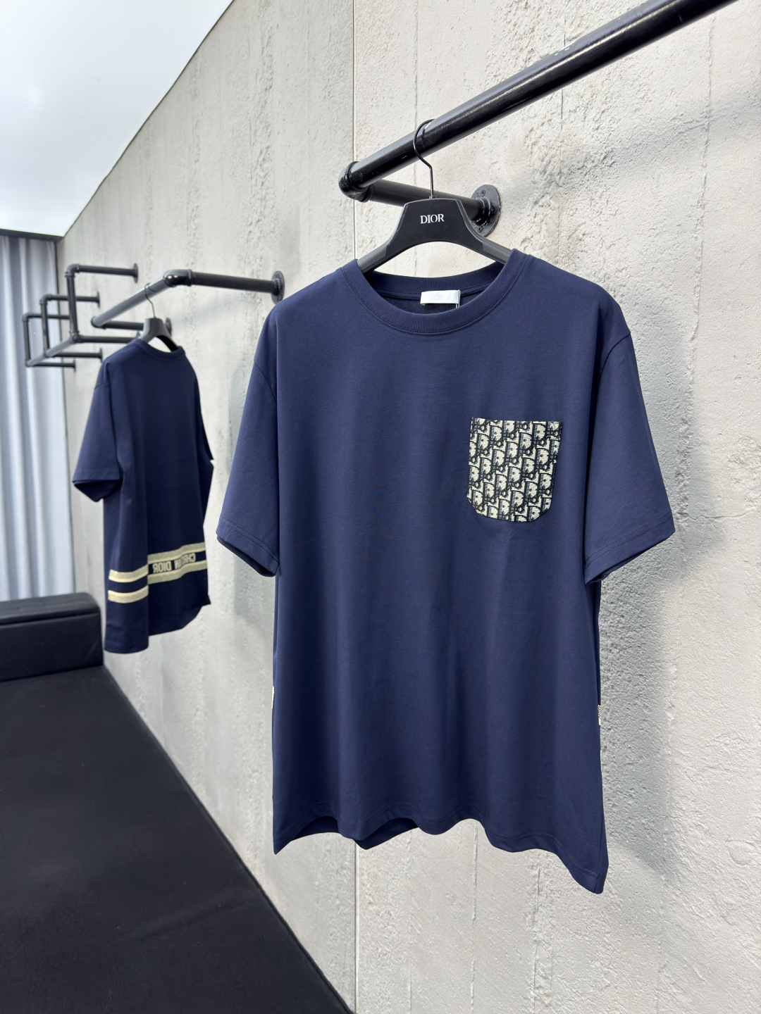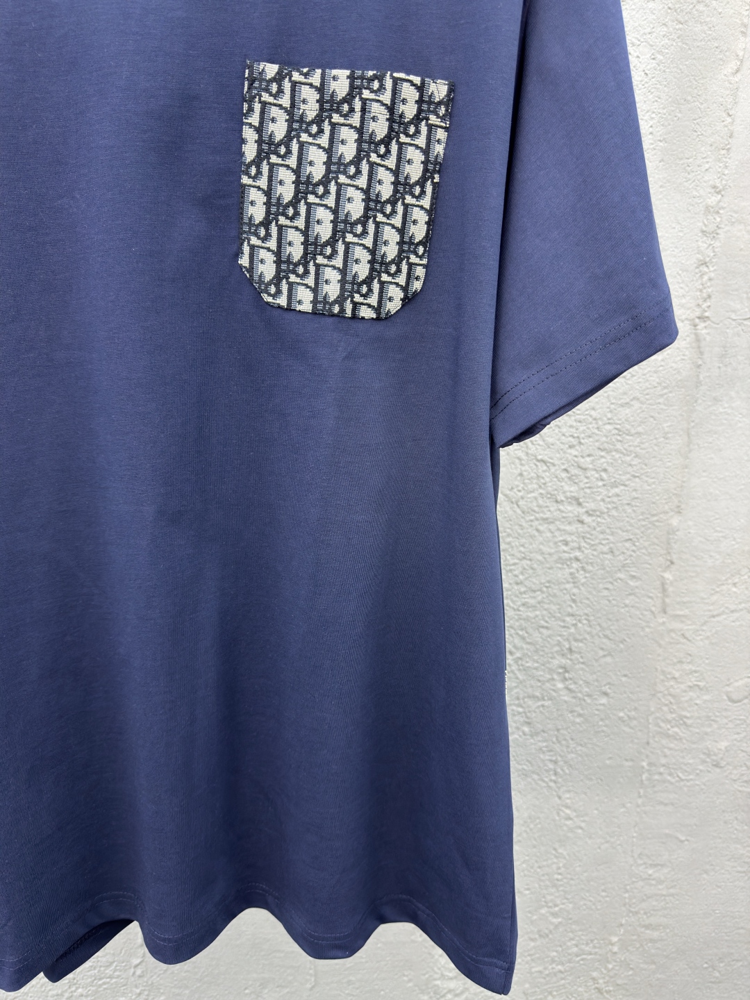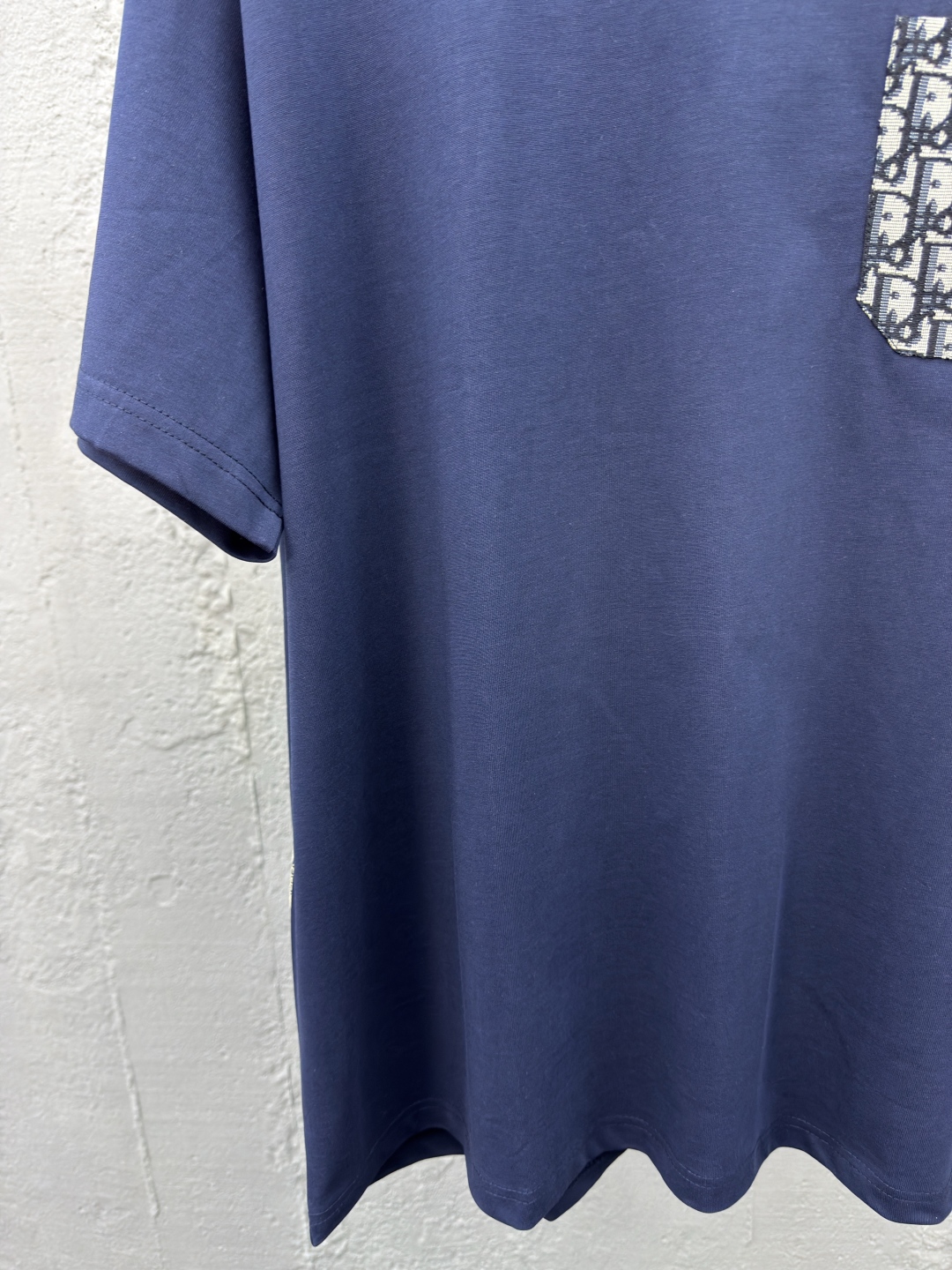 DIOR 老花提花口袋短袖 工艺说明:采用定制定染高克重原版面料,洗水完高达280g纯棉双纱面料,螺纹增加到2.7不变形,整体走线平直细腻,面料舒适柔软,颜色一致无色差 能与同款搭配营造时尚造型,驾驭各种场合,定制辅料,三标齐全,男女同款! ⚠️颜色:蓝色 ⚠️Size:XS/S/M/L