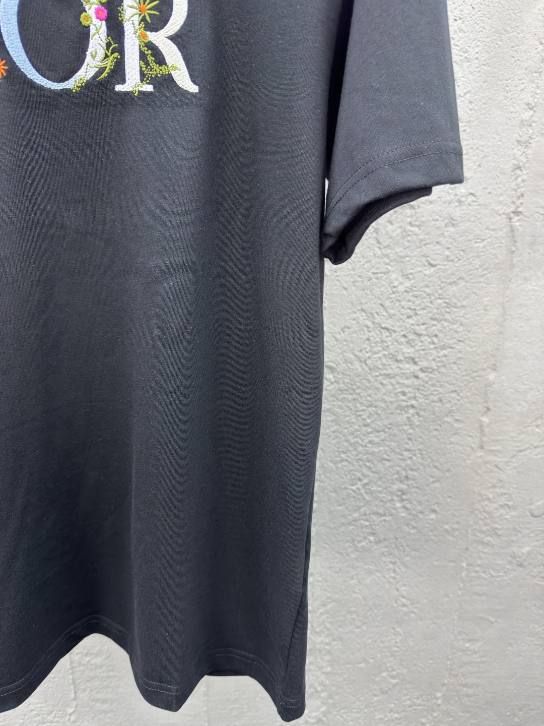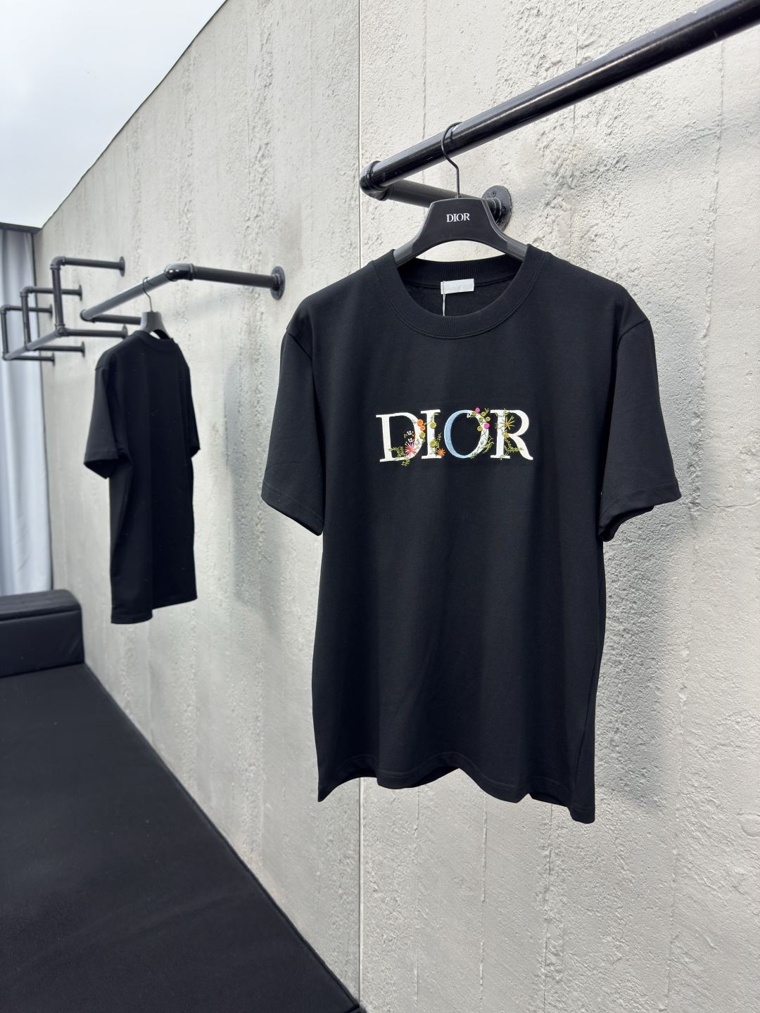 DIOR 花草字母印花短袖 工艺说明:定制280克全棉面料,以精致的花卉图案为点缀,融合了经典与现代元素,展现出独特的传统韵味和时尚感,整体走线平直细腻,面料舒适柔软,颜色一致无色差 能与同款搭配营造时尚造型,驾驭各种场合,定制辅料,三标齐全,男女同款! ⚠️颜色:黑色 ⚠️Size:XS/S/M/L