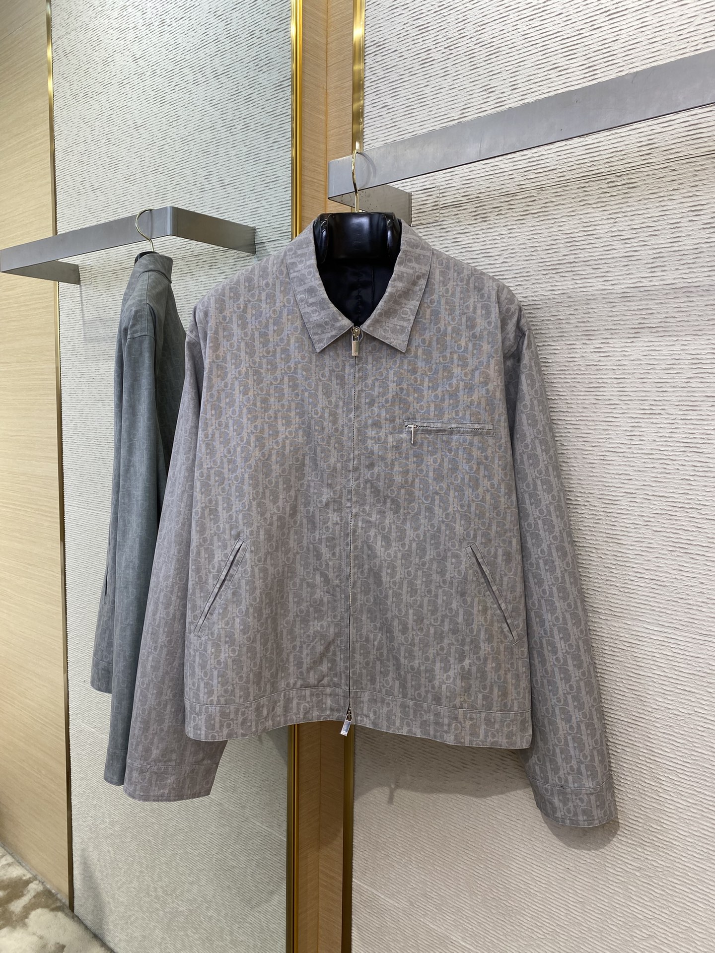 YB购入打版,采用定制棉质牛仔布打造,面料舒适柔软,透气性好,通体饰以经典的 Oblique 徽标提花诠释,胸前拉链贴袋点缀以标签,翻领设计,双向拉链开合,搭配品牌标志拉链头,铝合金CD字母四合扣,能与多类型服饰搭配营造时尚造型,定制辅料,三标齐全,男女同款! ⚠️洗涤方式:建议干洗或反面冷水单独快速机洗 ⚠️售后无忧-顶级服务、效率、品质! ⚠️正确价格请添加客服微信咨询 ➖➖➖➖➖➖ ⚠️ 版型 宽松 ⚠️ 颜色 灰色 ⚠️ 尺码 S/M/L/XL
