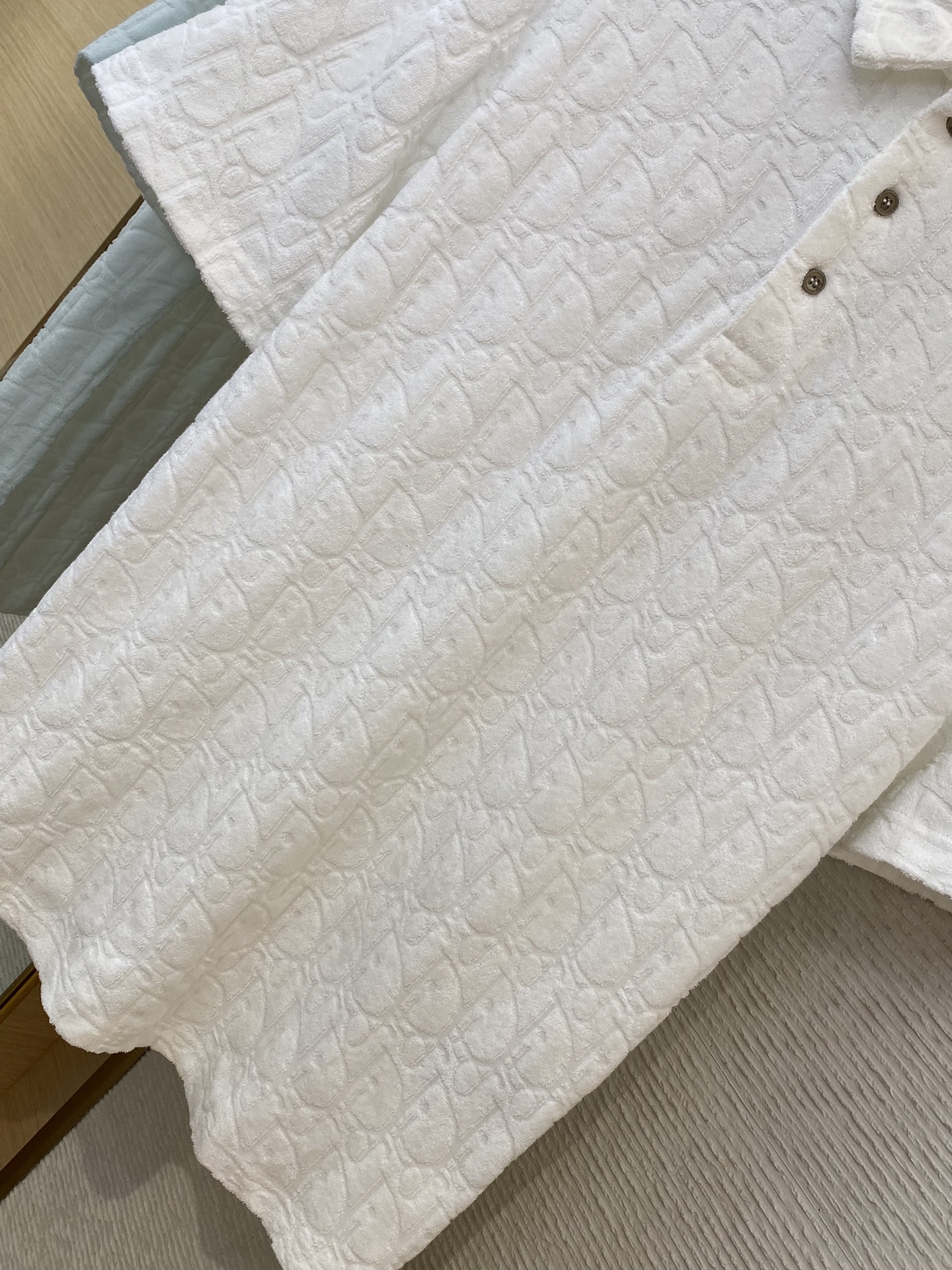 DIOR迪奥提花毛巾布短袖T恤 【正确价格咨询客服】 【编码8825088】 YB购入打版,采用60s长绒棉毛巾布面料,克重280g,配套定染2*2无根全棉螺纹,丝光工艺处理纱线,成品布更具肌理光泽,通体饰以经典的Oblique提花,采用18针机台单面毛巾机织胚布,成品布预缩后对版定染颜色,吊牌、领标、水洗麦,定制辅料,男女同款! ⚠️洗涤方式:建议干洗或反面冷水单独快速机洗 ⚠️售后无忧-顶级服务、效率、品质! ⚠️正确价格请添加客服微信咨询 ➖➖➖➖➖➖ ⚠️ 版型 宽松 ⚠️ 颜色 单色 ⚠️ 尺码 S/M/L/XL