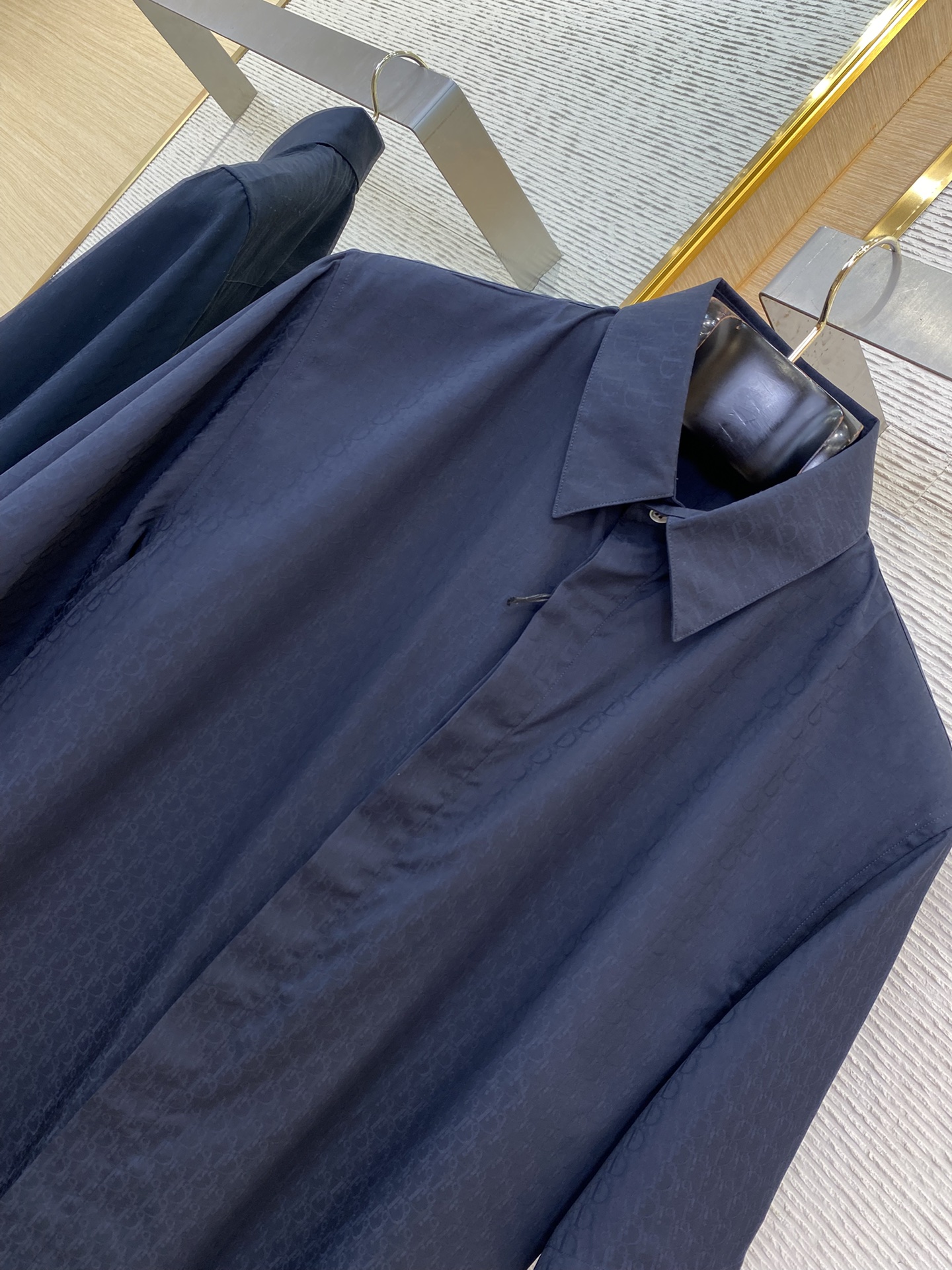 YB购入打版,采用定制蚕丝高密高支面料制作而成, %桑蚕丝,面料舒适柔软,亲肤,透气性好全幅饰以Oblique双色提花工艺,不同角度不同光线,有不同的颜色反馈,开模定制带Logo的珍珠母贝纽扣,区别于低版本,能与多类型服饰搭配营造时尚造型,定制辅料,三标齐全,男女同款!