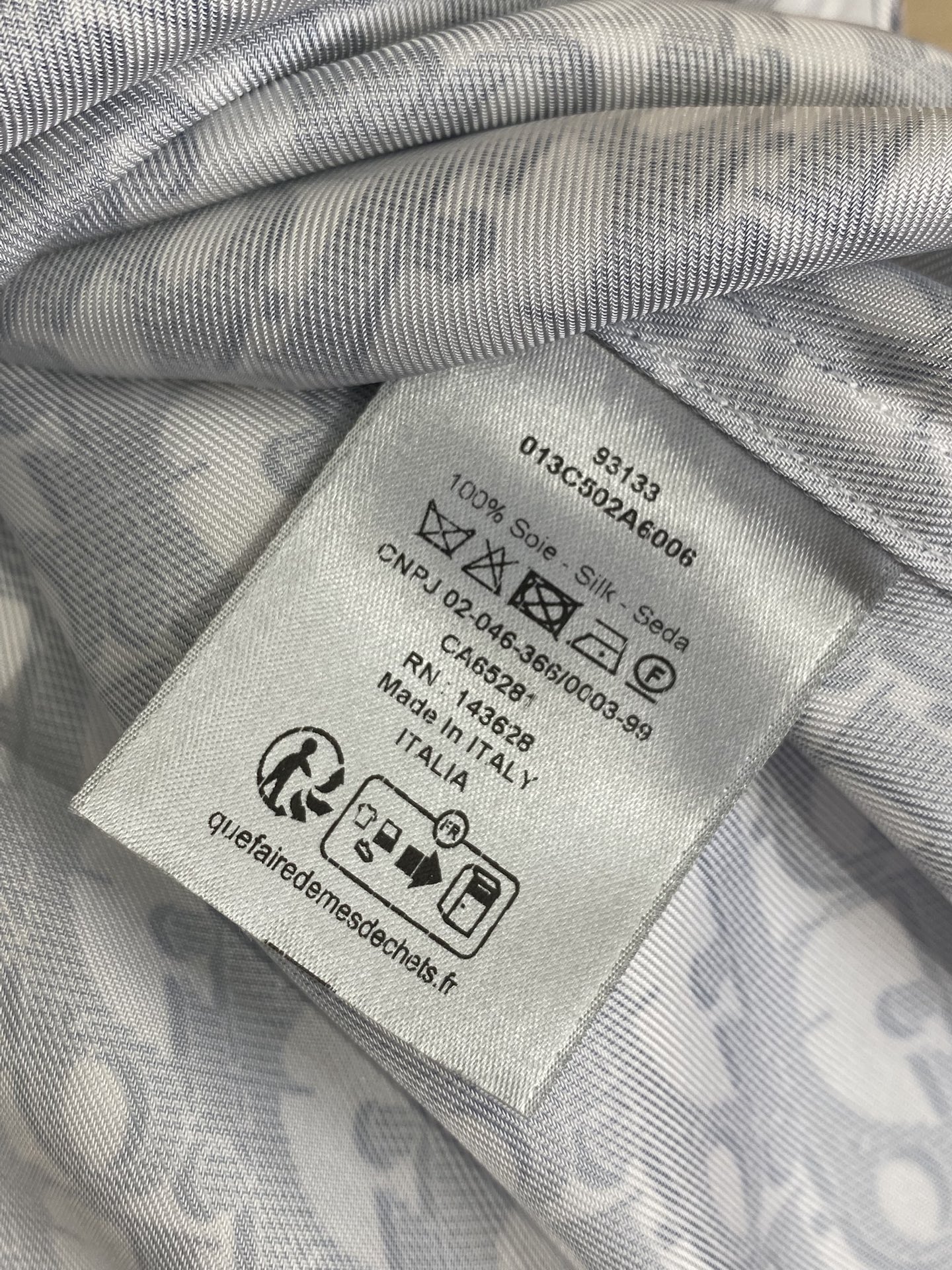 YB购入打版,采用定制桑蚕丝面料, %桑蚕丝,触感柔滑细腻,贴肤穿着倍感舒适,通体饰以经典的Oblique印花,巧妙提升整体格调,纯净白色与深邃藏蓝的碰撞,如同夜空与白昼的交替,共同诠释着高级而优雅的美学理念,工艺方面,烫朴位均经过高温过朴机处理,通过加热板和压力辊的协同作用,使布料表面平整挺括,耐磨耐洗,品质卓越,此外,衬衫还配备定制dior纽扣,每一处细节都彰显着dior的精湛工艺与非凡品质,宽松版型设计,穿着自在无拘束,尽显时尚魅力。无论是商务洽谈还是休闲时光,都能轻松驾驭,彰显独特品味!男女同款!