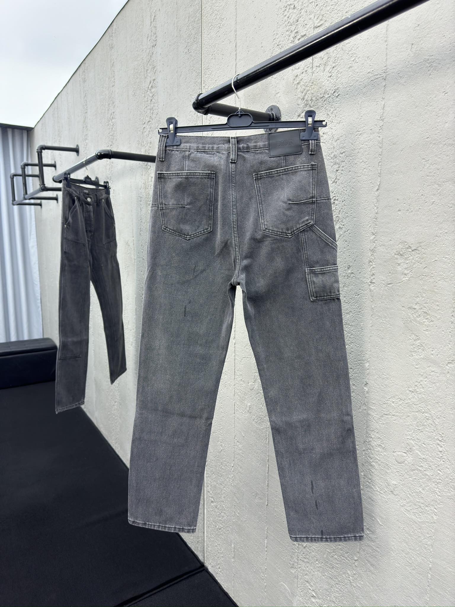 DIOR 迪奥牛仔长裤 工艺说明:采用棉质斜纹面料精心制作,以环境友好的方式突显激光褪色风格,从而在生产过程中减少使用水。胸前和背部饰以Dio压花皮革标牌,呈现复古效果。可与配套的牛仔裤搭配,打造精致时尚的造型。男女同款! ⚠️颜色:灰色 ⚠️Size:30/31/32/33/34/36
