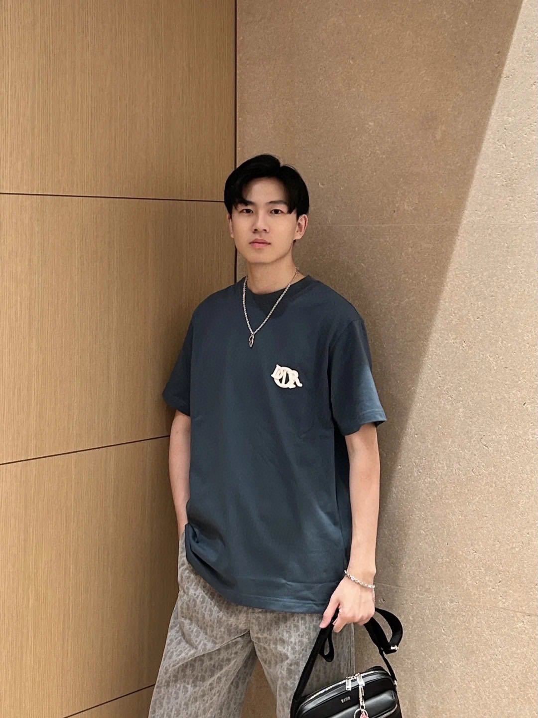 DIOR迪奥CD 四色绣花章仔字母短袖T恤 上身效果#