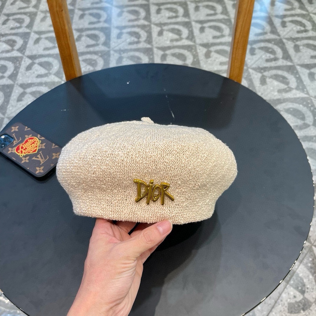 Dior2024新款纯色贝雷帽子女显脸_12899