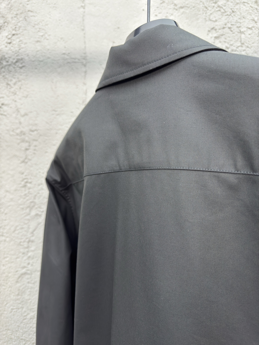 工艺说明:选用黑色华达呢面料,其紧密的纺织构造,使它具有良好的抗皱性,耐磨性和垂坠感。由于羊毛成分的加持使其拥有保暖性和透气性。现代版型修身剪裁和隐藏式拉链开合增添了低调的精致感。袋口同样也是隐藏式拉链开合,袋口首尾均运用口袋套结工艺加固。袋体边缘处紧密的缝线使其牢固和美观。左右设有侧插袋,袋口只做了0.5公分的包边,既保留了整体线条的流畅性又不失实用性。整体走线平直细腻,面料舒适柔软,颜色一致无色差 能与同款搭配营造时尚造型,驾驭各种场合,定制辅料,三标齐全,男女同款!