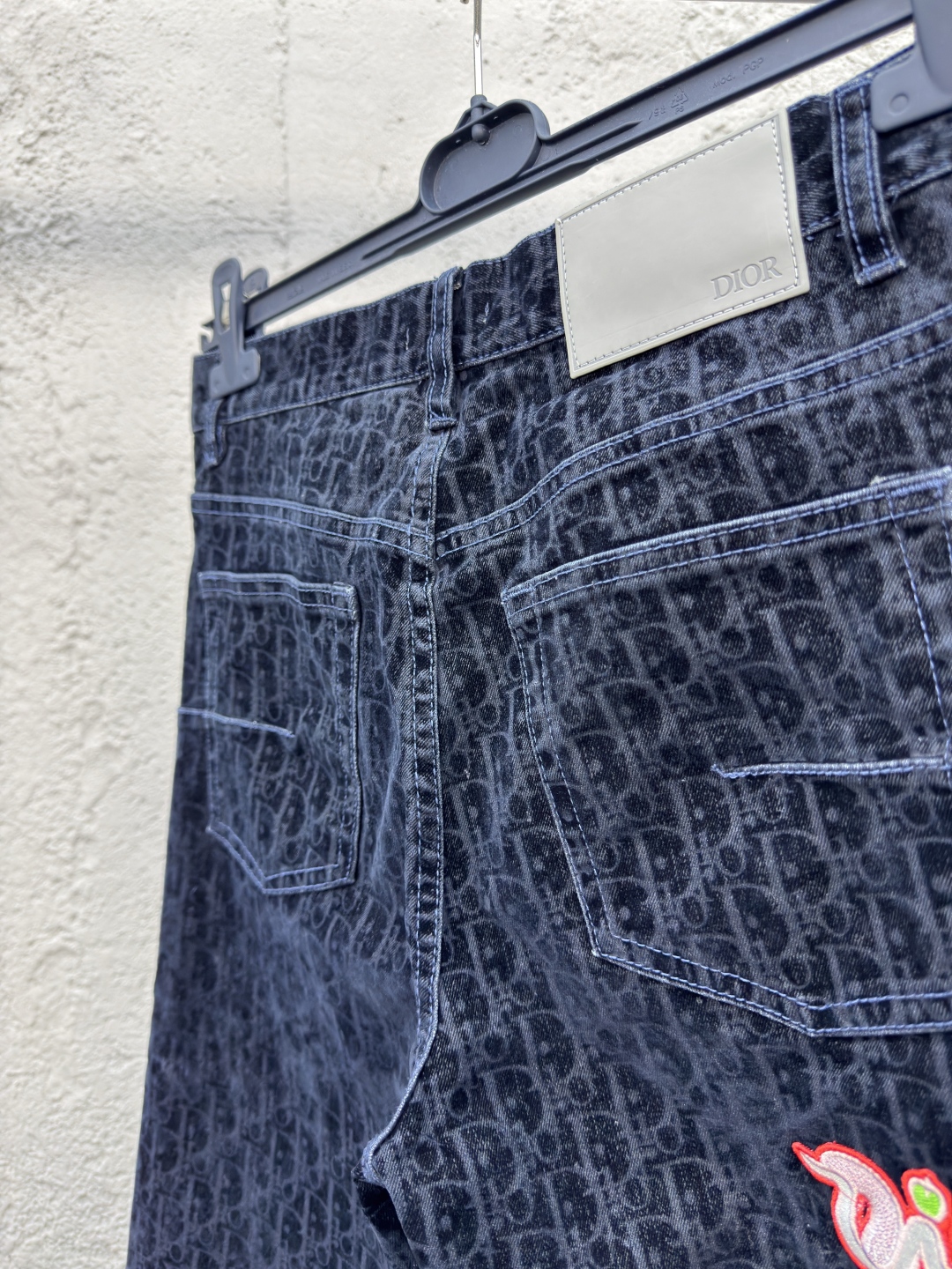 DIOR X KAWS 联名蛇年限定牛仔裤 工艺说明:采用蓝色棉质混纺牛仔布精心制作,背面饰以 DIOR AND KAWS 刺绣,以五彩缤纷的蛇形重新诠释 Dior 标志。搭配植绒 Oblique 印花,整体走线平直细腻,面料舒适柔软,颜色一致无色差 能与同款搭配营造时尚造型,驾驭各种场合,定制辅料,三标齐全,男女同款! ⚠️颜色:藏青色 ⚠️Size:29/30/32/34/36
