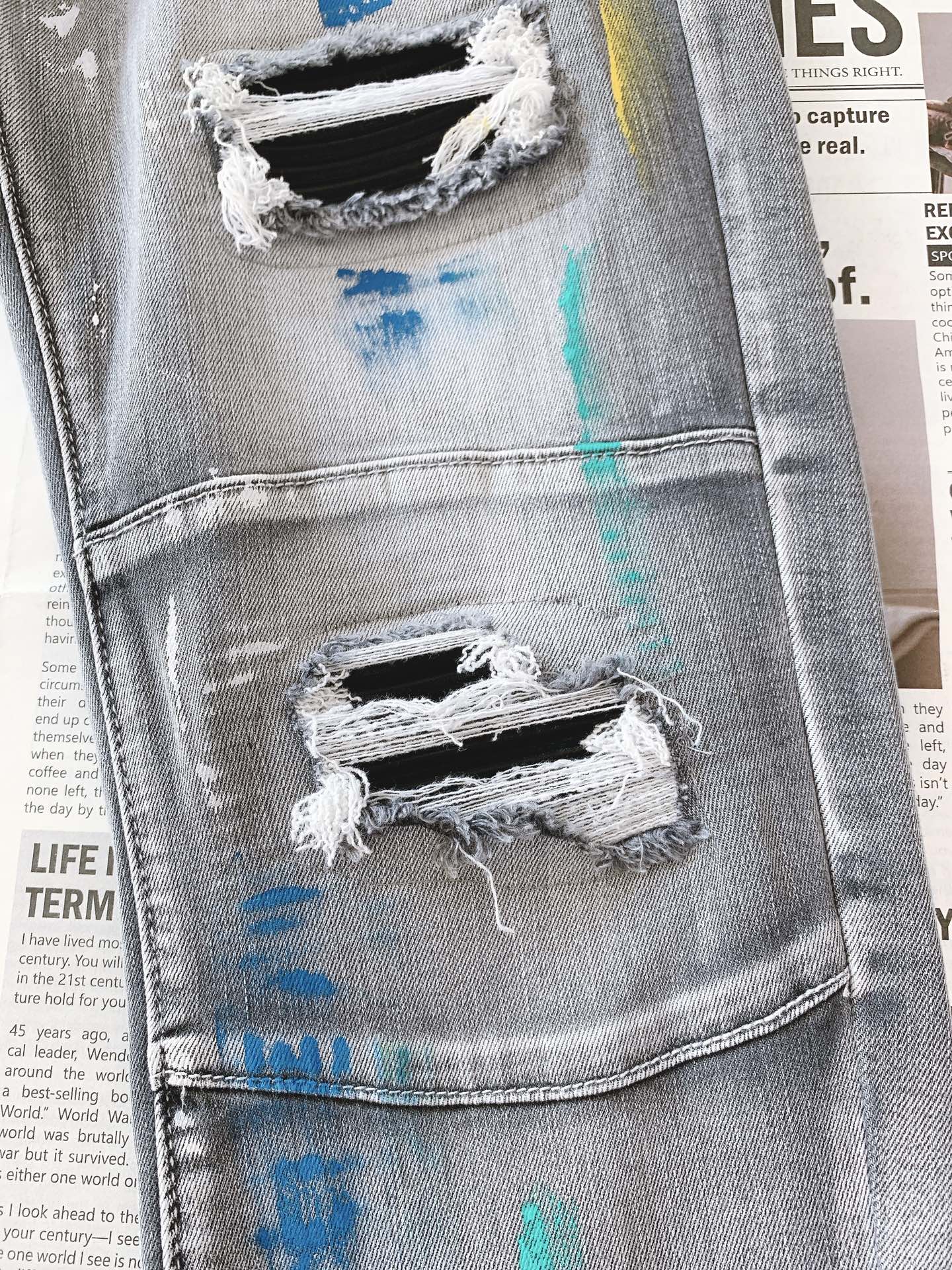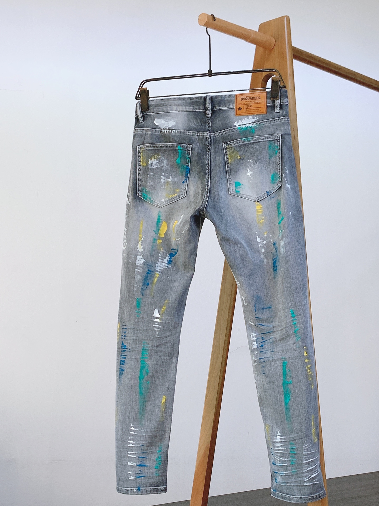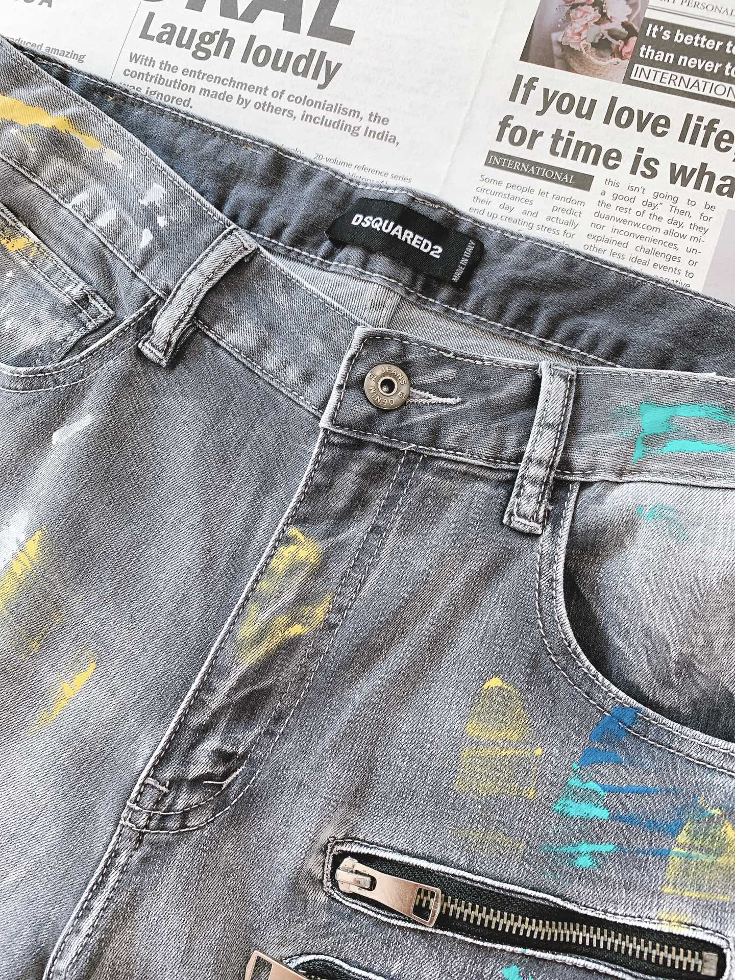 DSQUARED2 D二次方 2025SS早春新品 重工破洞印花牛仔裤 ,进口水洗弹力面料,超重工洗水工艺,上身舒适透气有弹力,客供五金辅料装饰,裤腿做旧破洞设计,工艺精湛,版型超正,全品相订单款,上身帅气十足 …………………………………………………… ❥∙Size:28-38