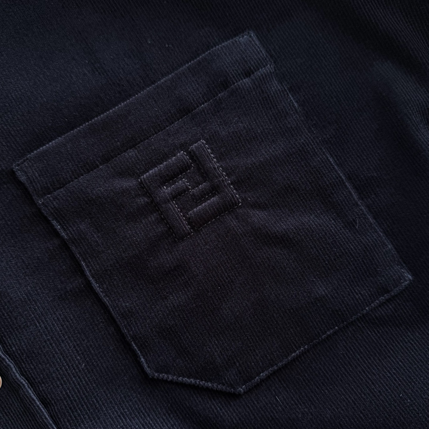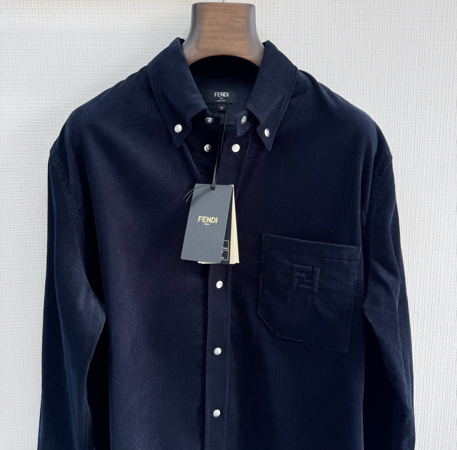 Fd 25ss 灯芯绒衬衫 100%棉灯芯绒面料 经典的系扣领设计,纽扣开襟,面扣带字母LOGO,四合扣开合,胸口贴袋,口袋绣有标志性的双FF图案撞色设计,肩部接缝处采用双针车缝制而成size:s/m/l/xl
