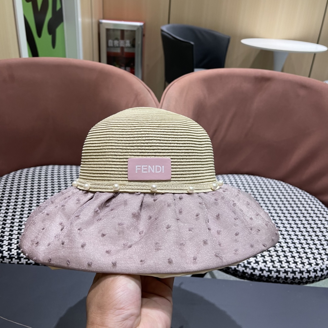 Fendi芬迪夏季新款珍珠帽子女百
