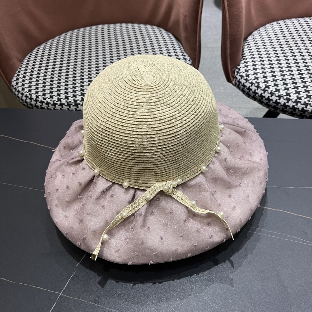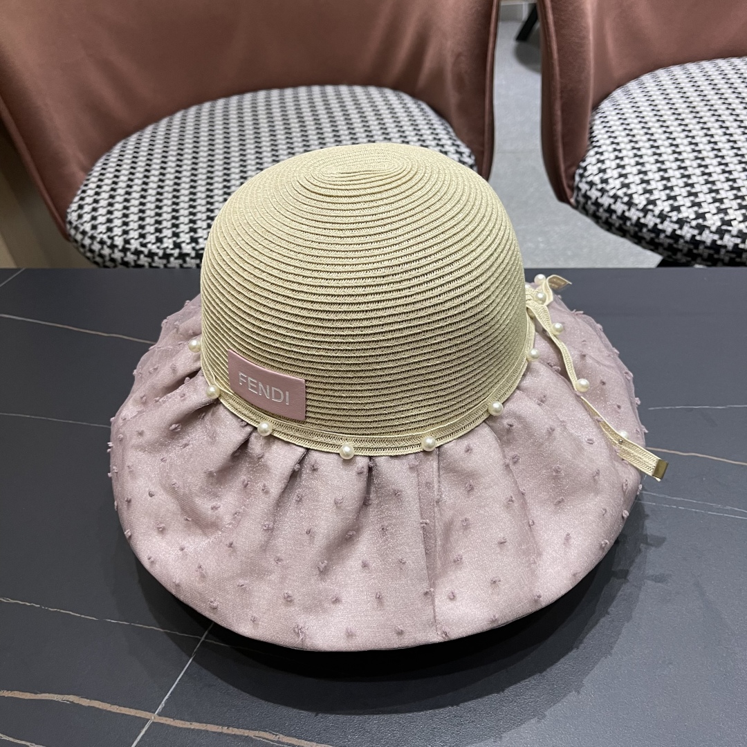 Fendi 芬迪夏季新款珍珠帽子女百搭针织透气户外防晒遮阳帽