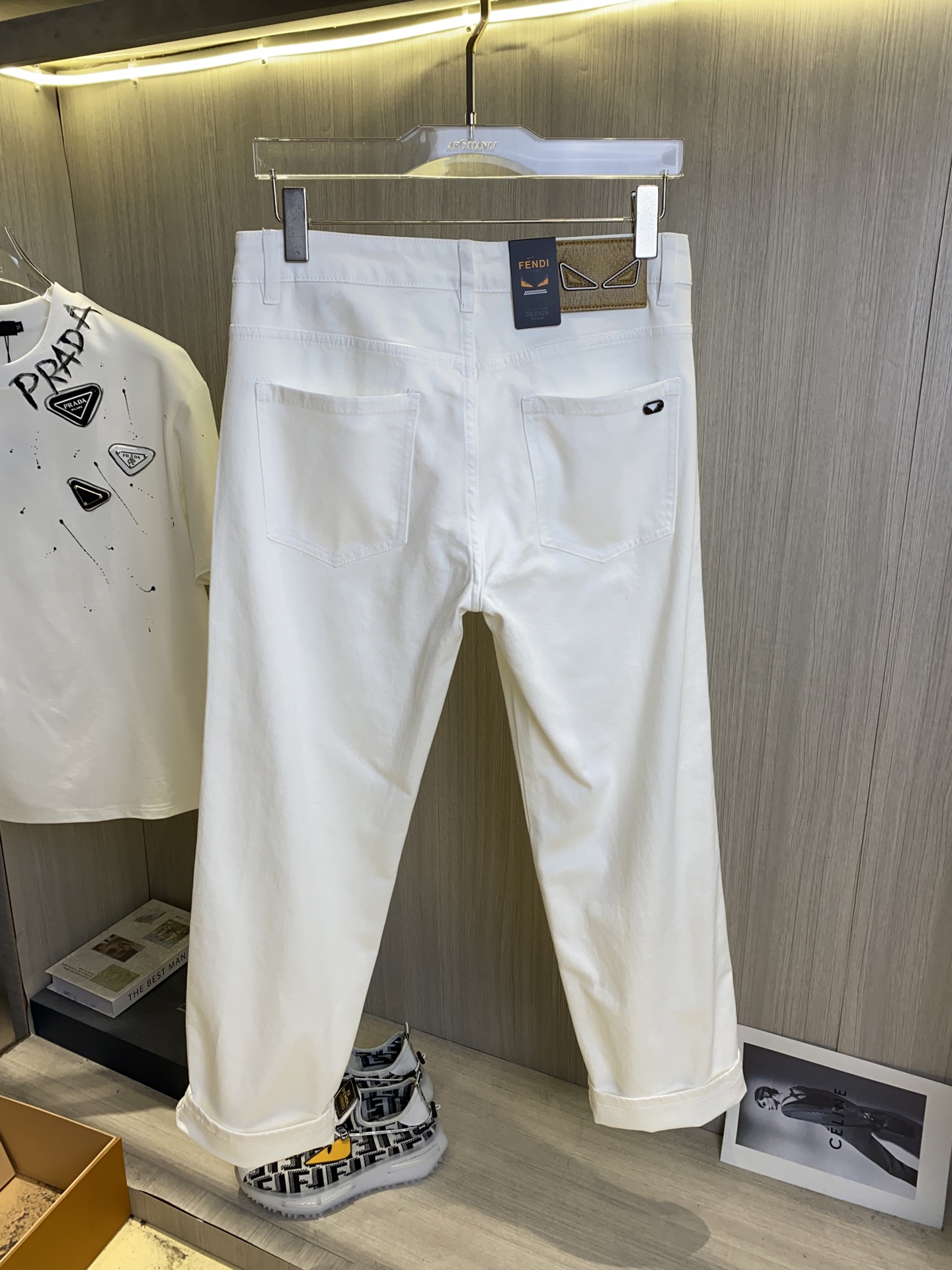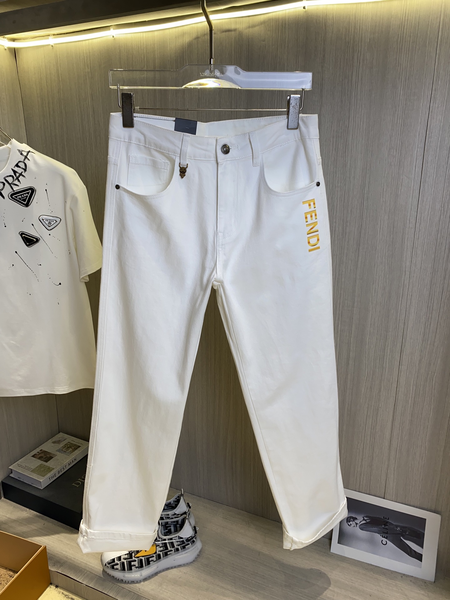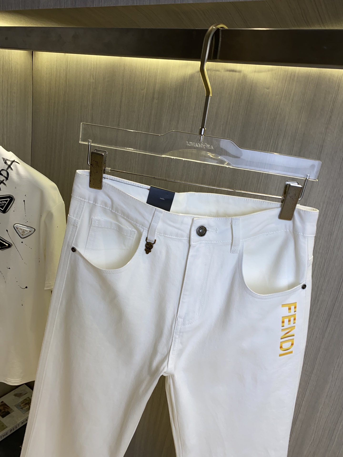 FENDI芬迪 2025新品男士牛仔裤 面料弹性好。独家发售 官网同步 时尚优雅 重工艺设计。采用原色酵母水洗工艺 精选进口重磅丹宁牛仔面料 配专柜五金装饰 真皮皮牌 精致车线 大牌风范 值得拥有。码数:28-38,隔天出货